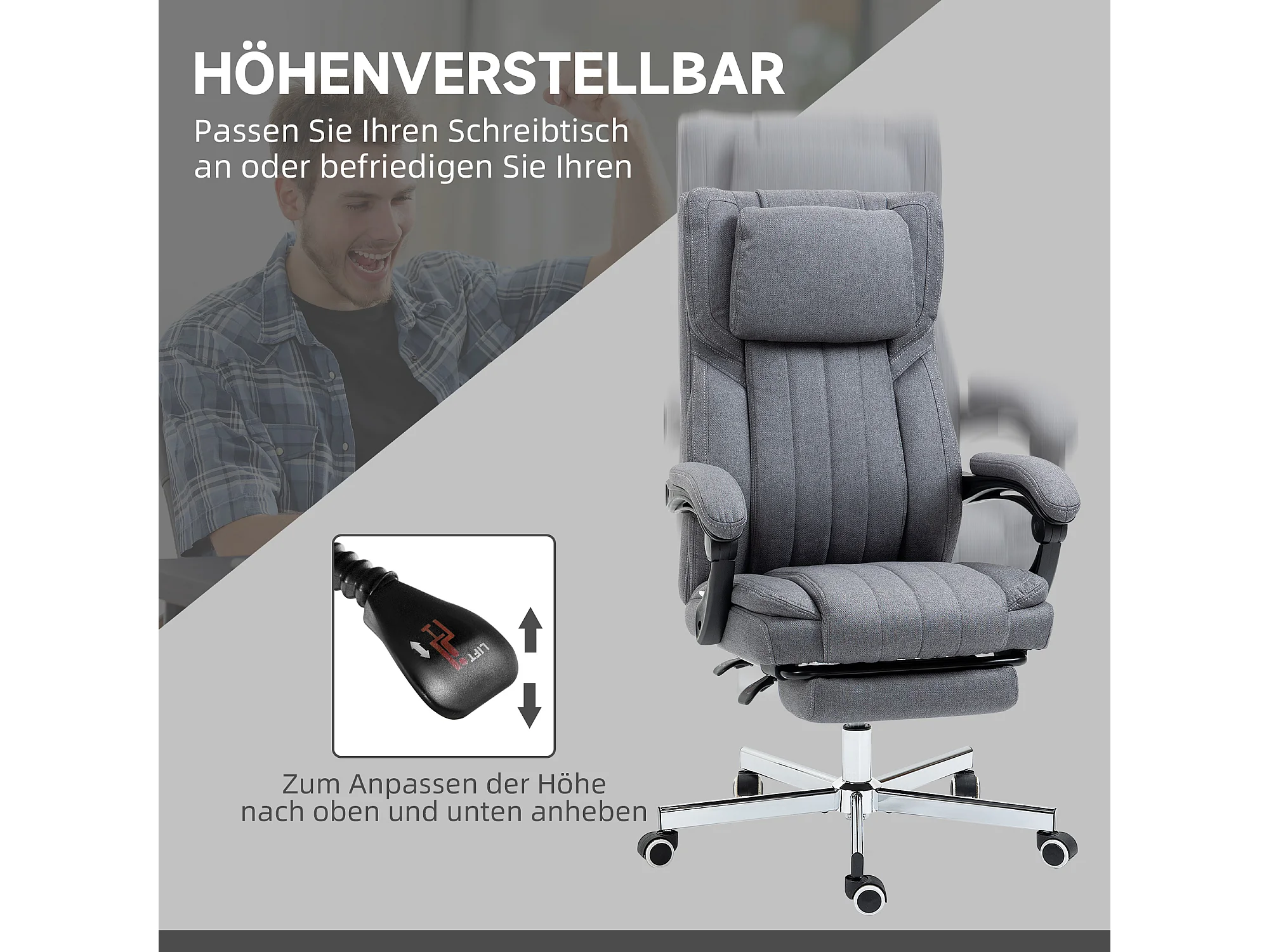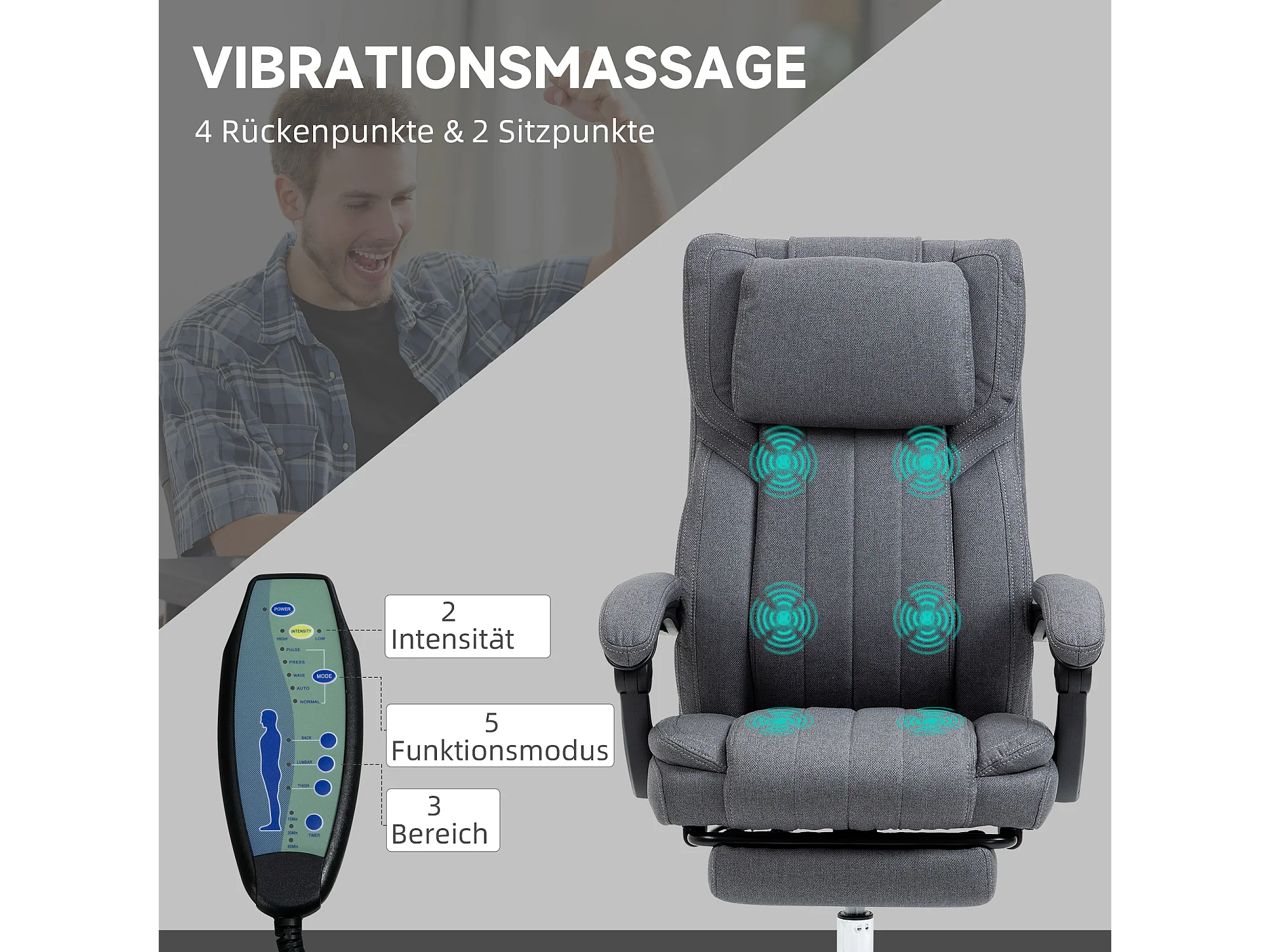 Fauteuil de Bureau avec Massage et Chauffage, Ergonomique, 6 Points de Massage, Repose-Pieds, Tissu, Gris (65x70x119 cm)