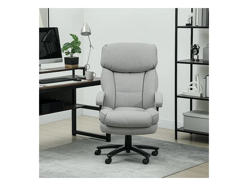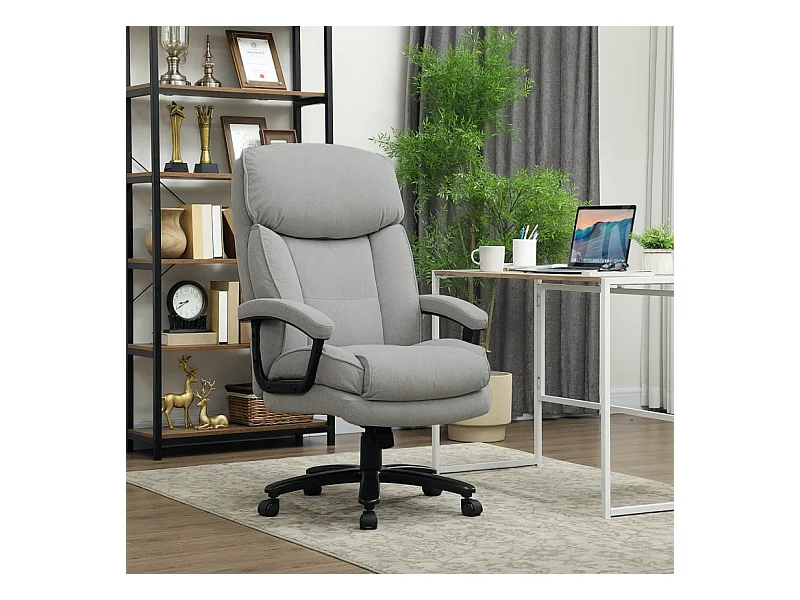 Fauteuil de bureau avec dossier haut, structure robuste, assise rembourrée, supporte jusqu'à 200 kg, gris clair, confortable pour bureau
