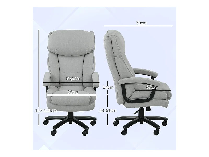 Chaise de bureau sans accoudoirs, large assise, réglable en hauteur, siège double épaisseur style tailleur, revêtement imitation lin, home office, gris