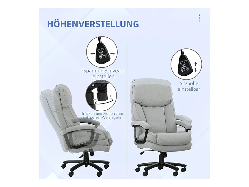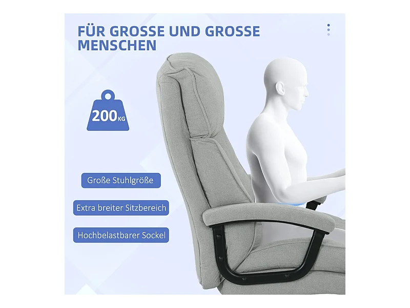 Chaise de bureau ergonomique avec massage et fonction inclinable, repose-pieds, réglable en hauteur, revêtement imitation lin, couleur gris