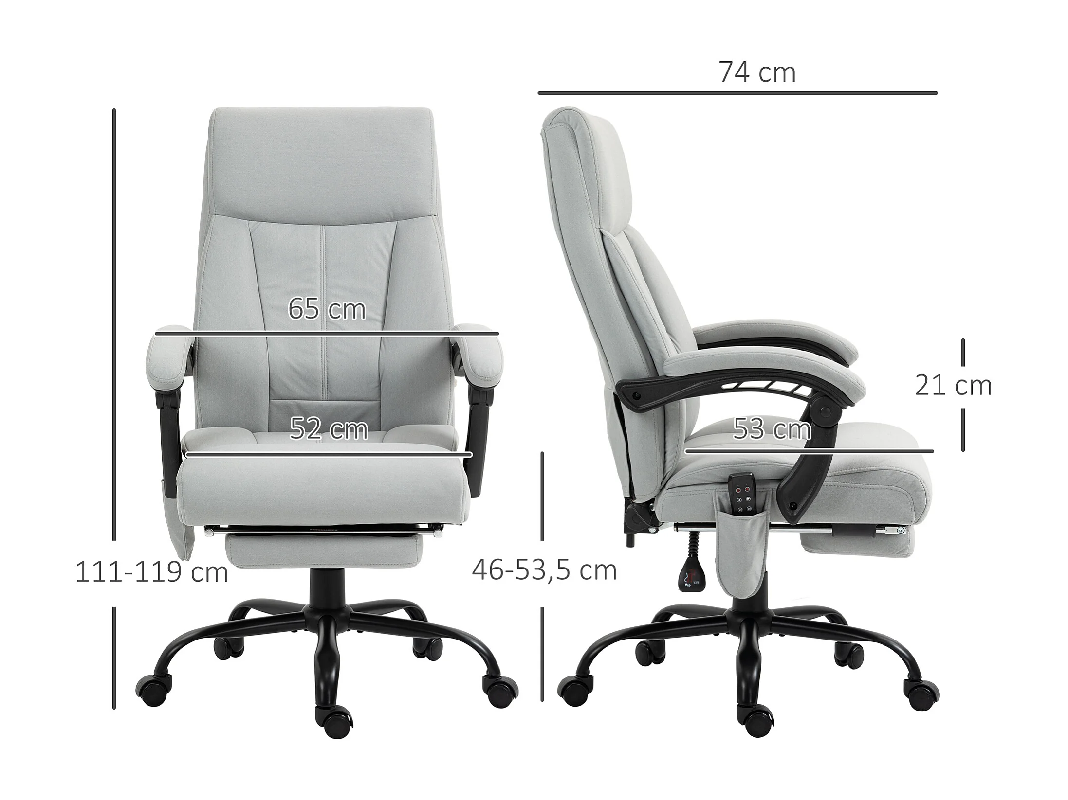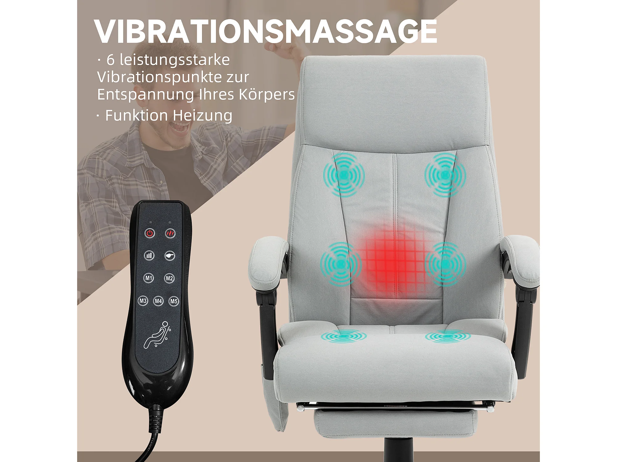 Fauteuil de Bureau avec Massage et Chauffage, Ergonomique, 6 Points de Massage, Repose-Pieds, Tissu, Gris (65x70x119 cm)