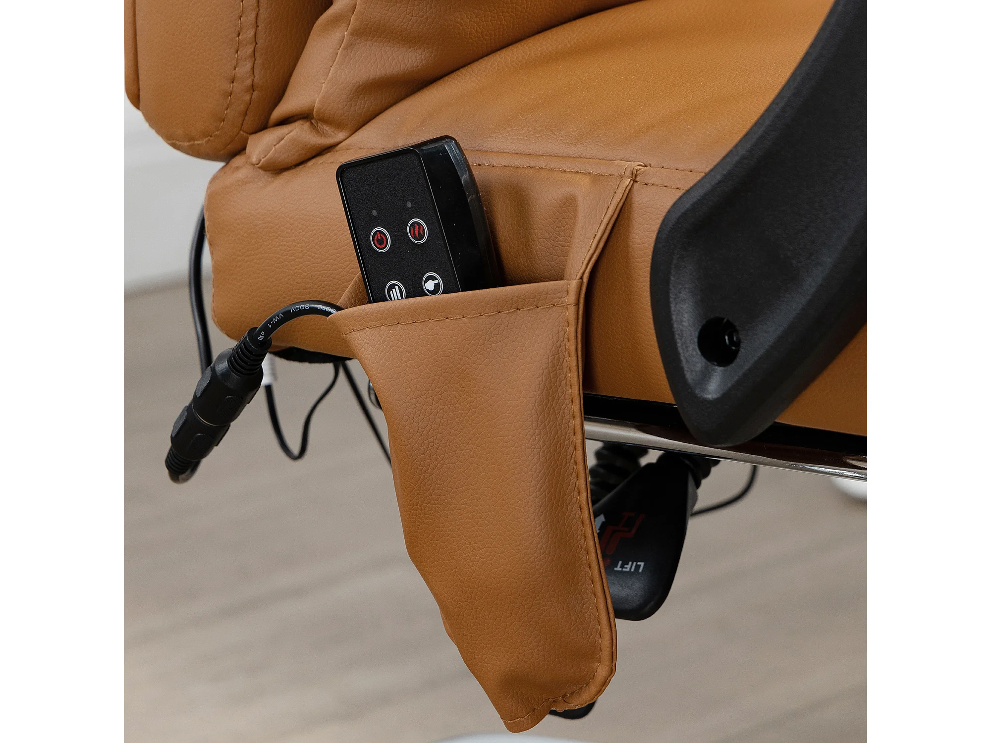 Chaise de bureau avec massage, chauffage lombaire, 6 points de massage, 5 modes, cuir synthétique, marron (66x67x115-123 cm)