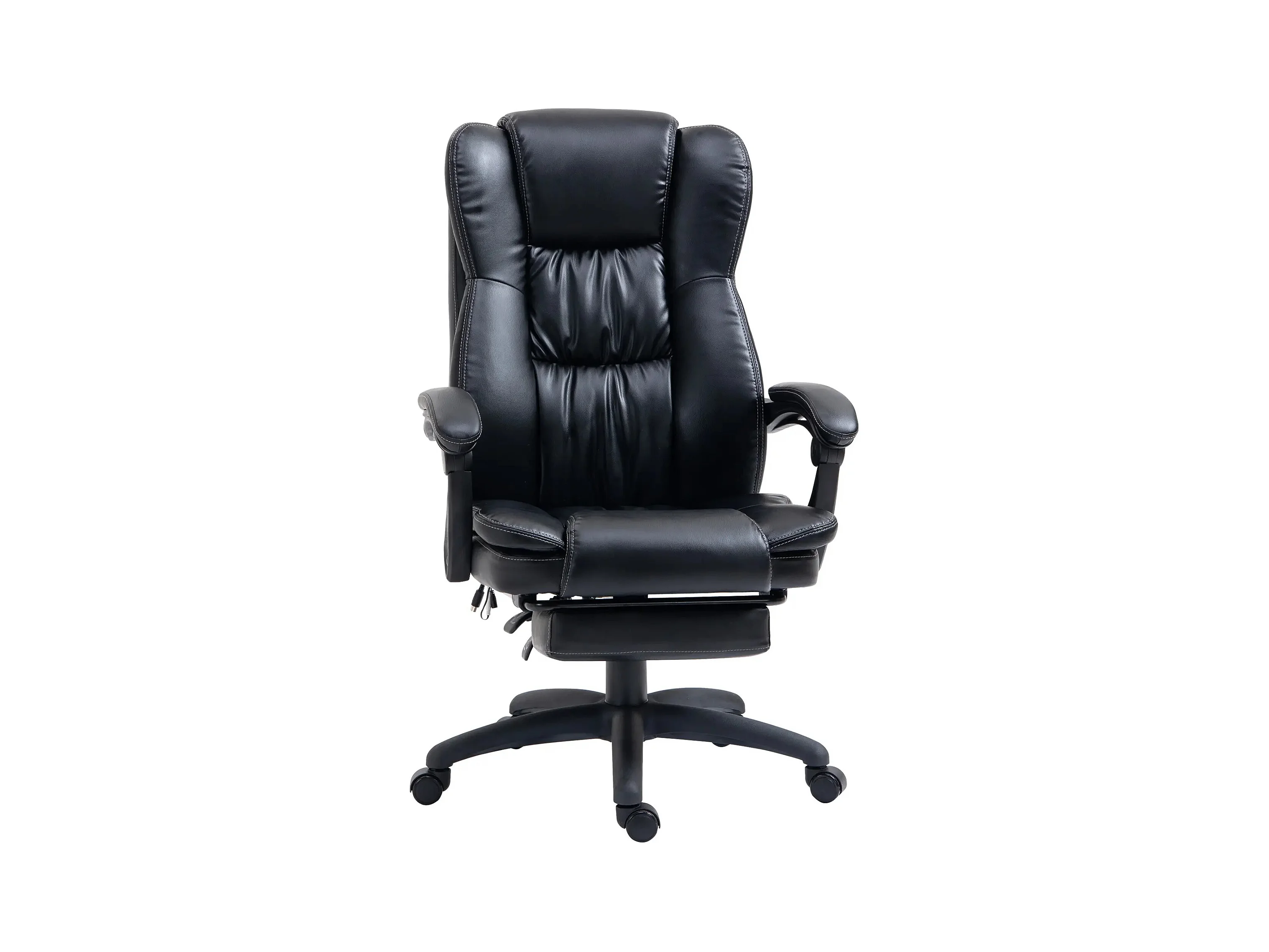 Fauteuil de bureau avec repose-pieds et appui-tête, massage et vibration, réglable en hauteur, pivotant, noir, 68,5x68,5x119-127 cm