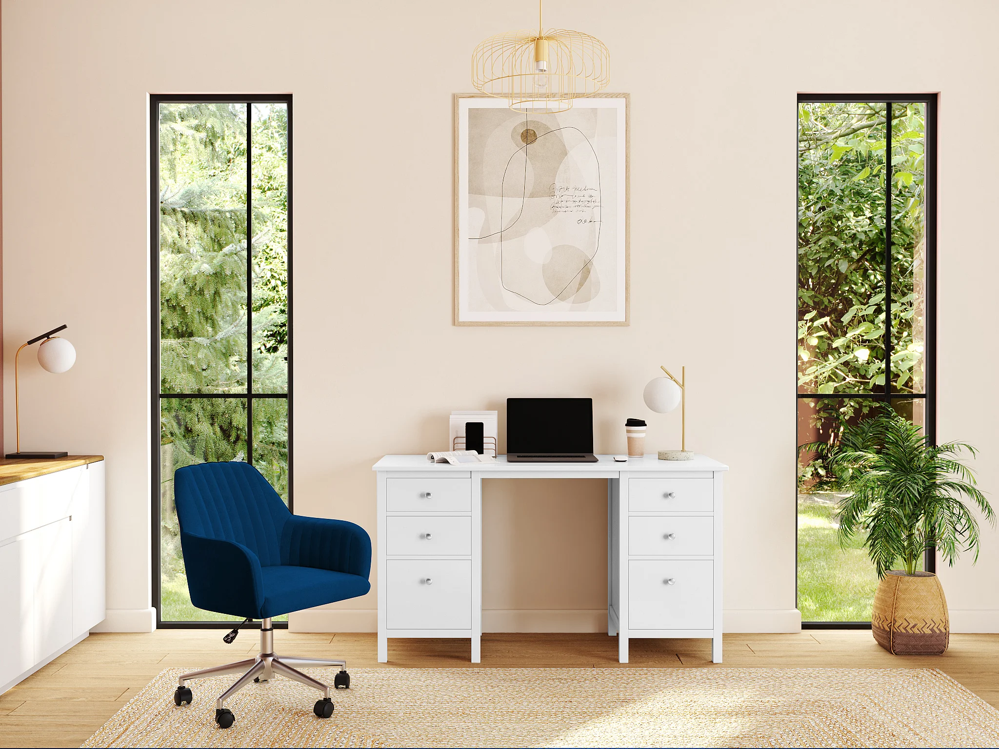 Chaise de bureau - Velours - Bleu et argenté - Hauteur réglable - ELEANA