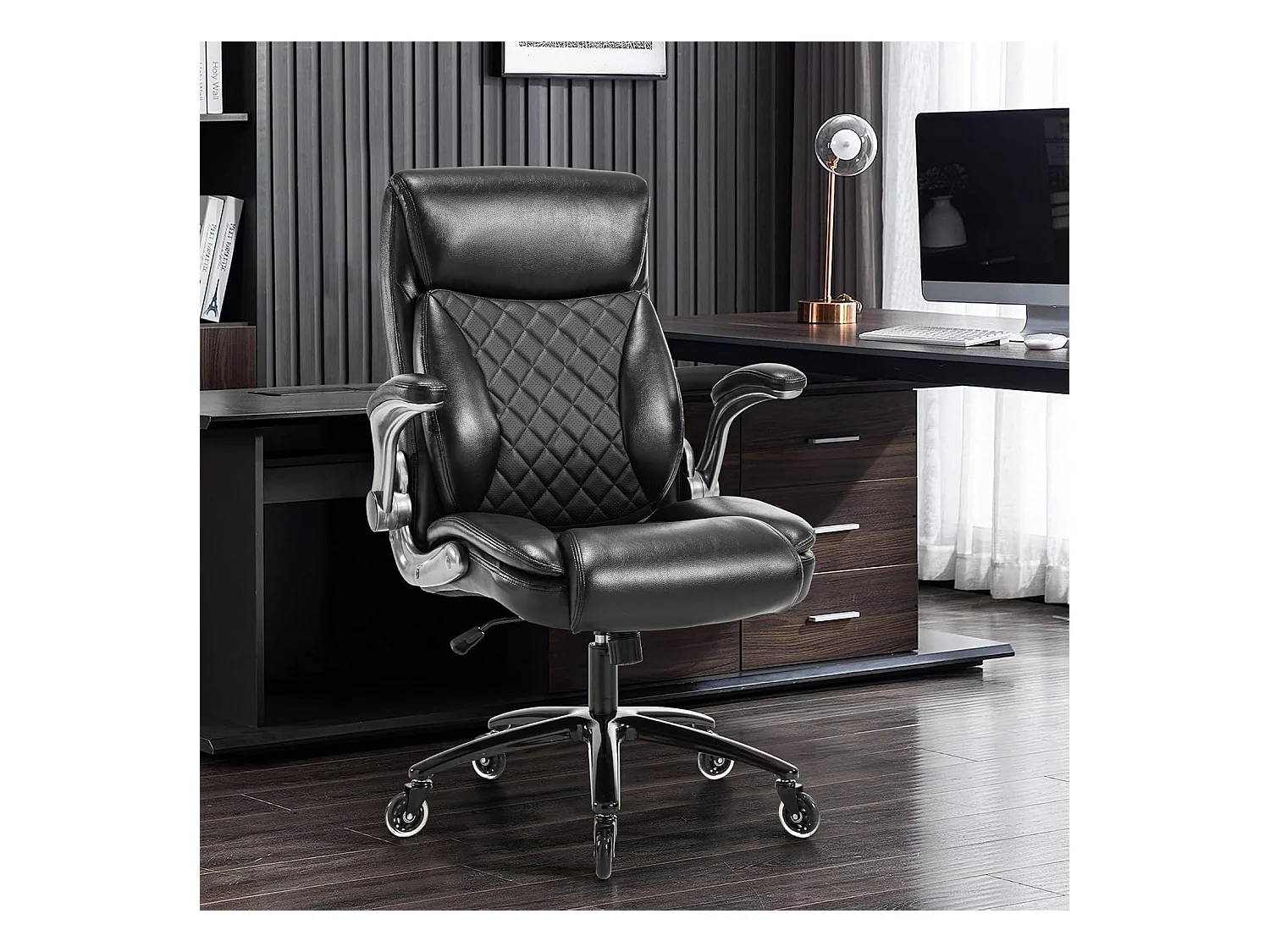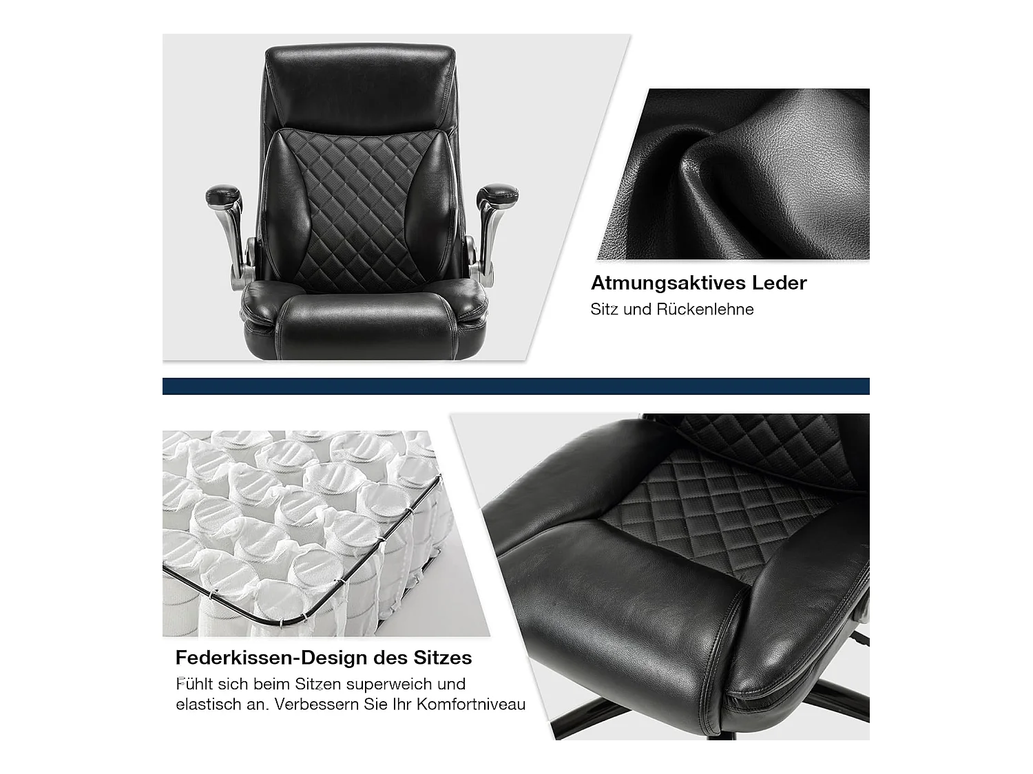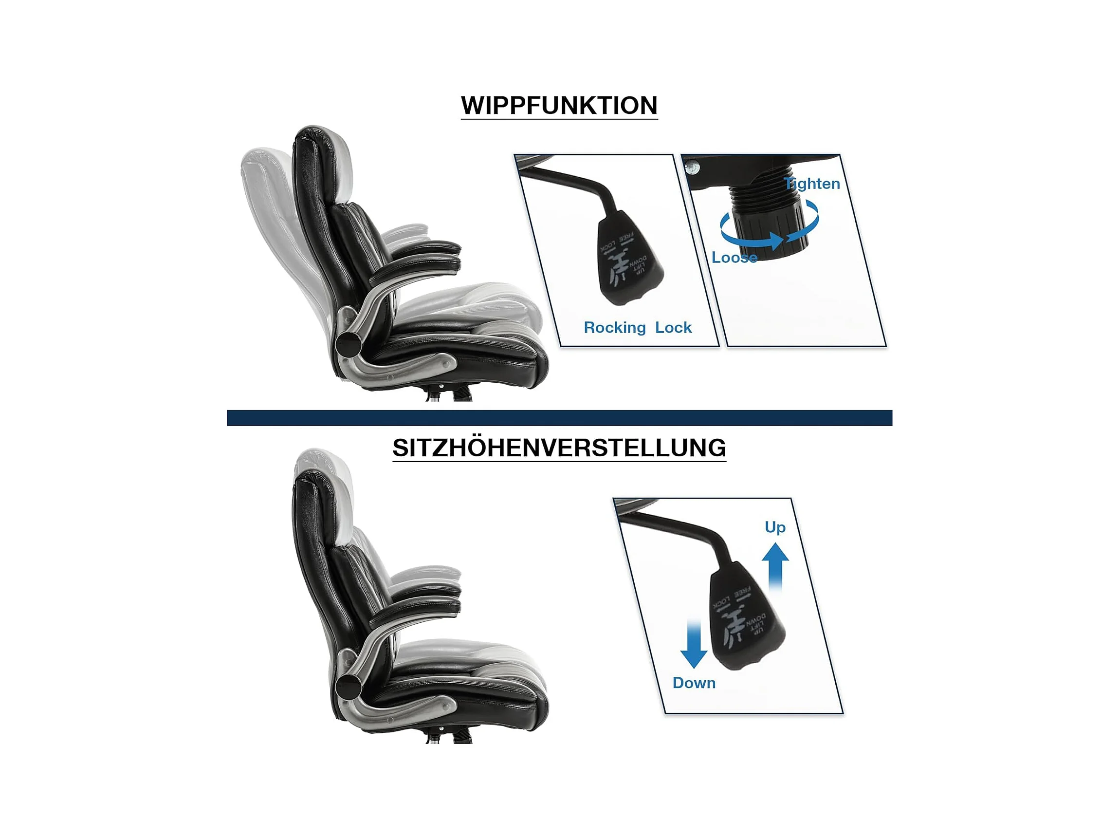 Fauteuil de bureau ergonomique avec dossier haut, accoudoirs relevables, capacité 200 kg, revêtement simili cuir PU, couleur noir