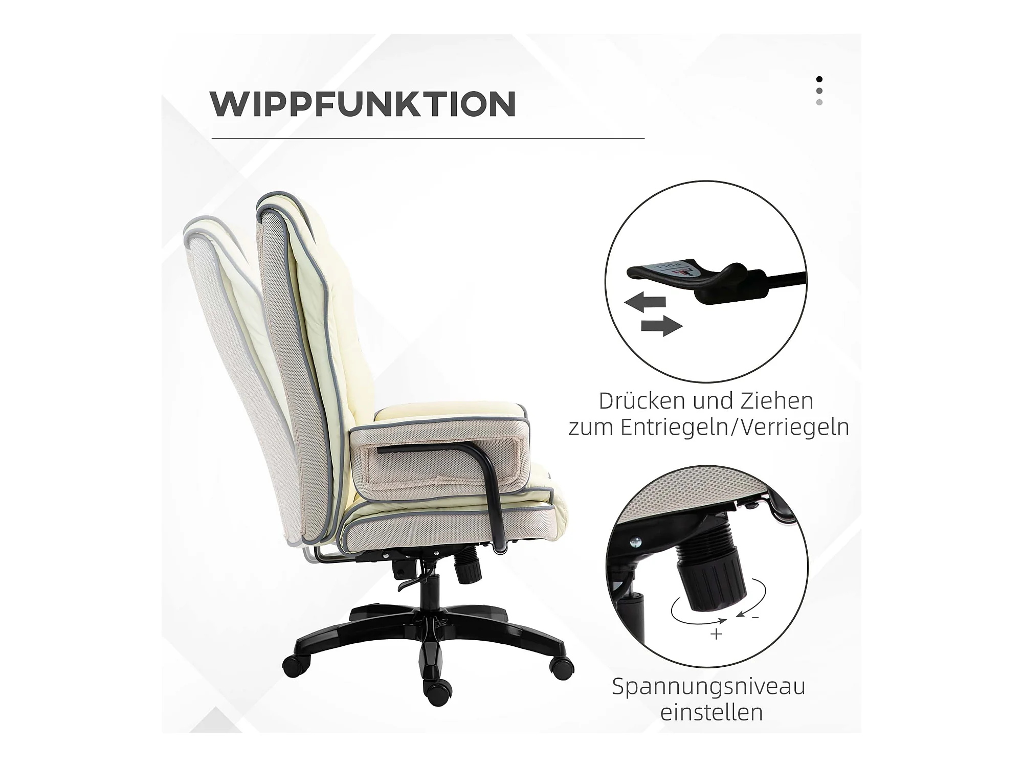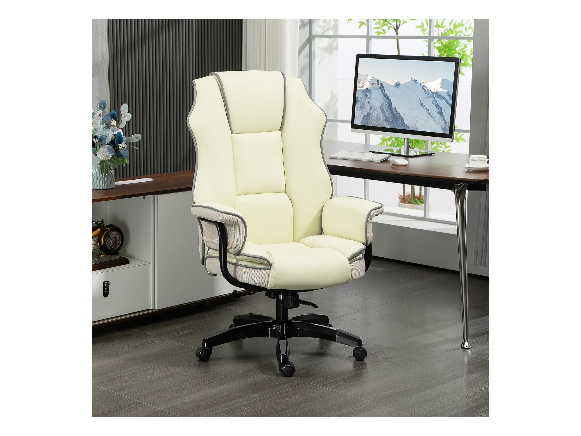 Chaise de bureau inclinable et rembourrée, pivotante avec repose-pieds, réglable en hauteur, capacité 120 kg, simili cuir, blanc