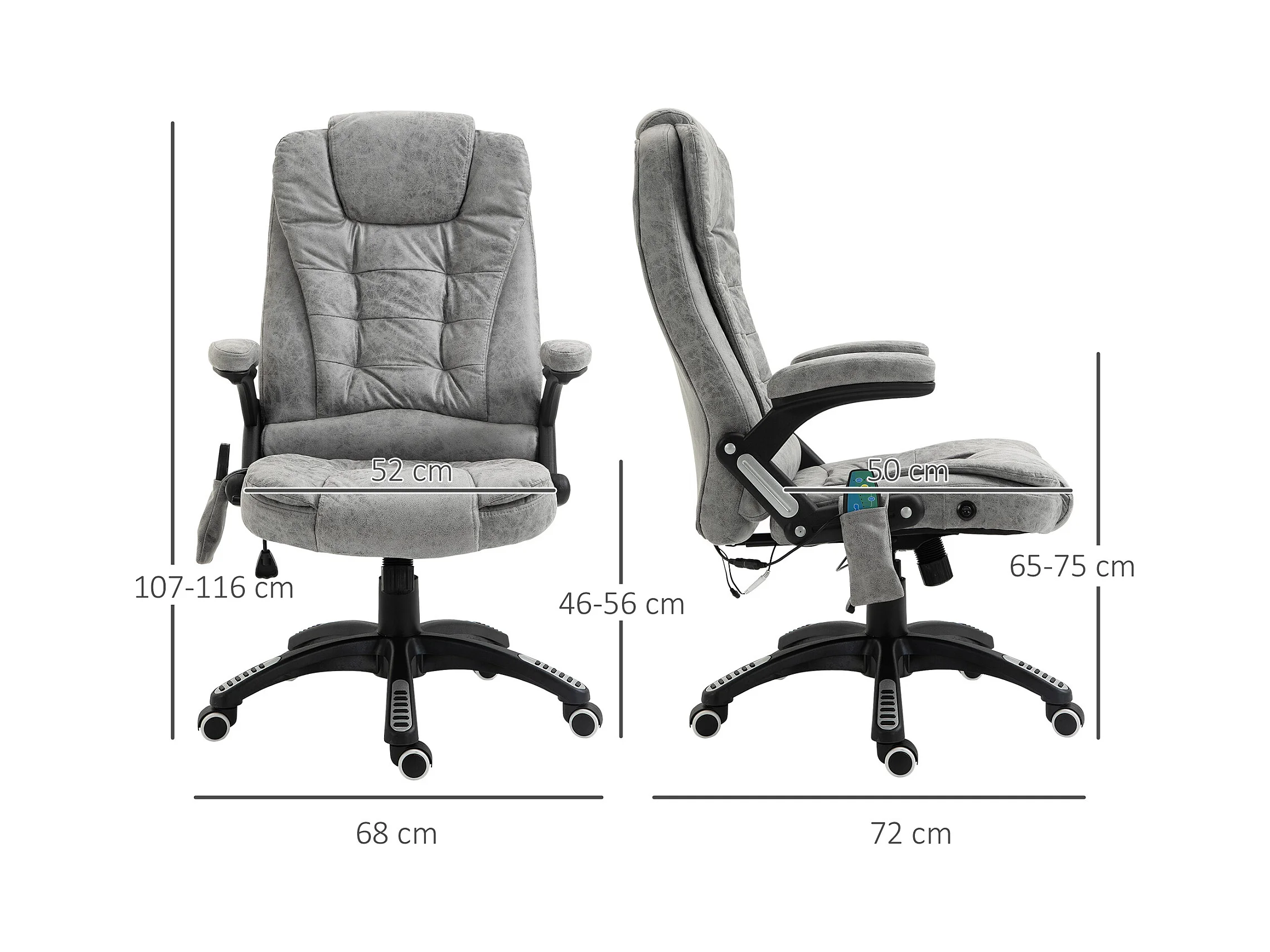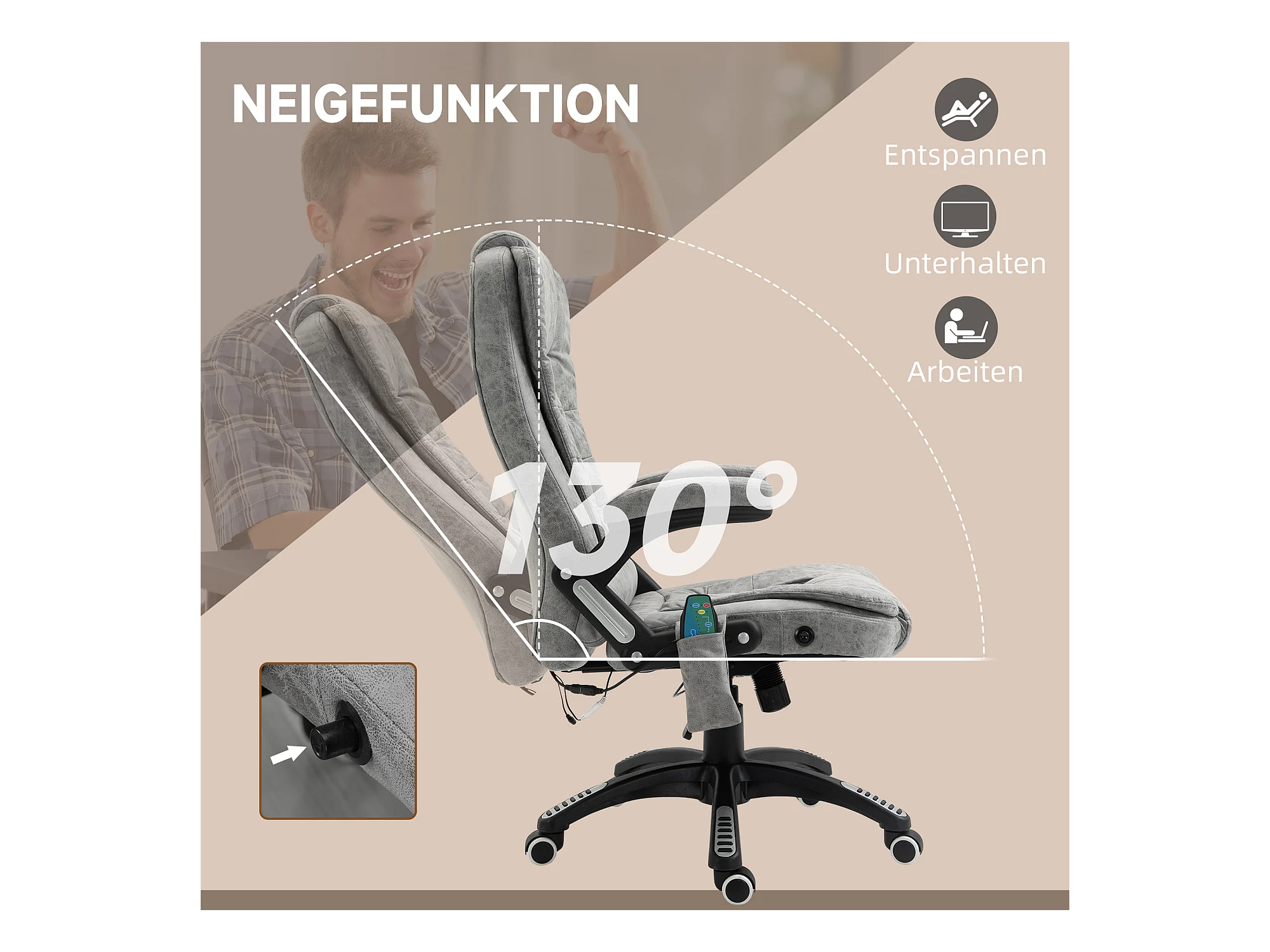 Chaise de bureau ergonomique Vinsetto avec fonction massage et chauffage, inclinable 135°, réglable en hauteur, support jusqu’à 120 kg, couleur gris