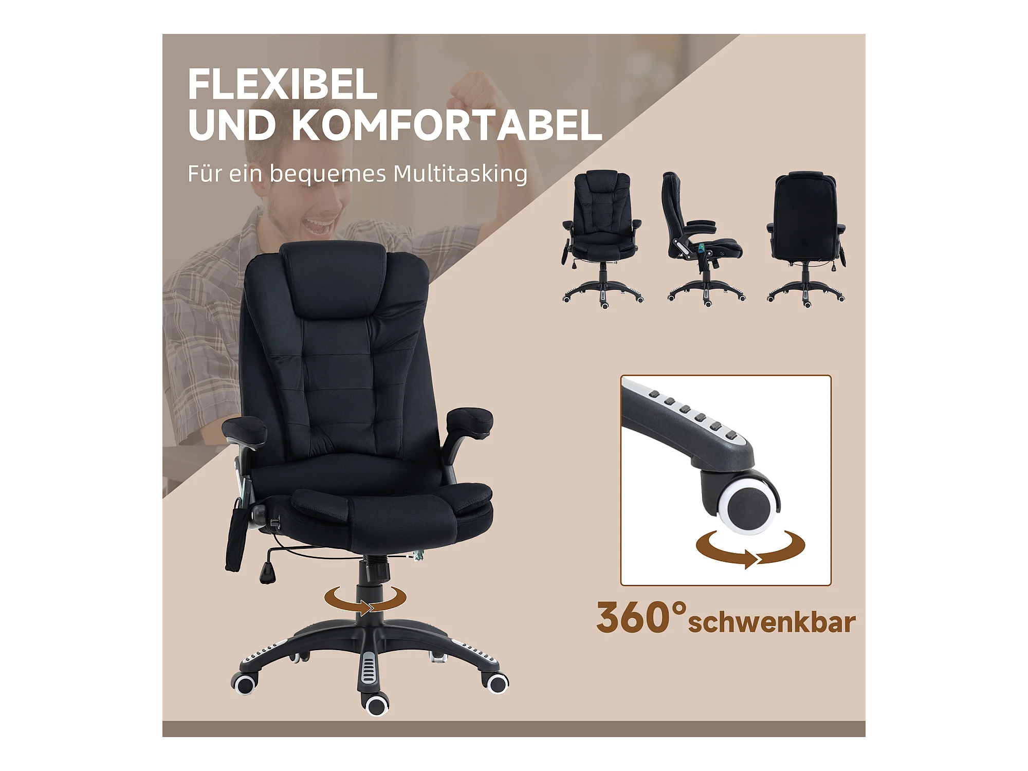Fauteuil de bureau ergonomique avec massage et chauffage, réglable en hauteur, chaise de direction, supporte jusqu'à 120 kg, noir