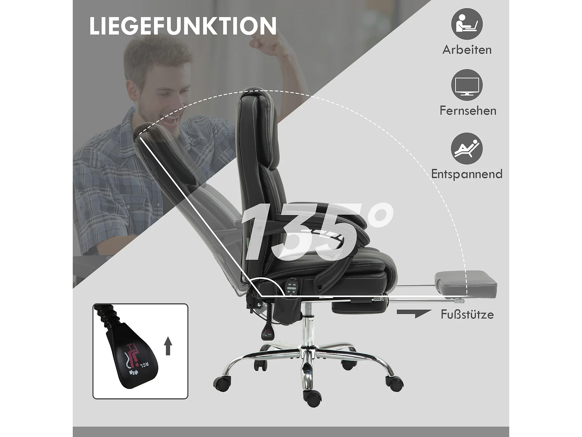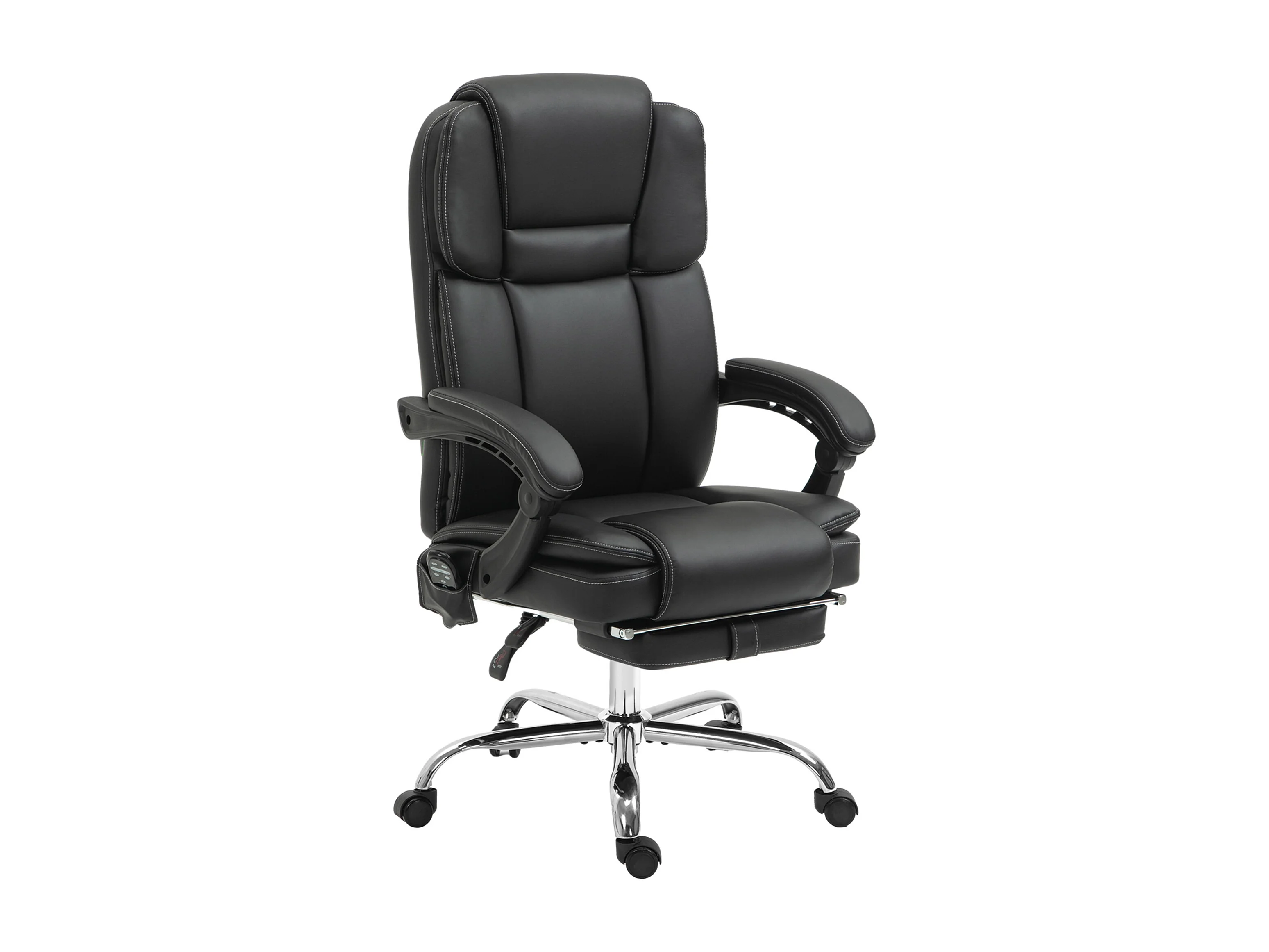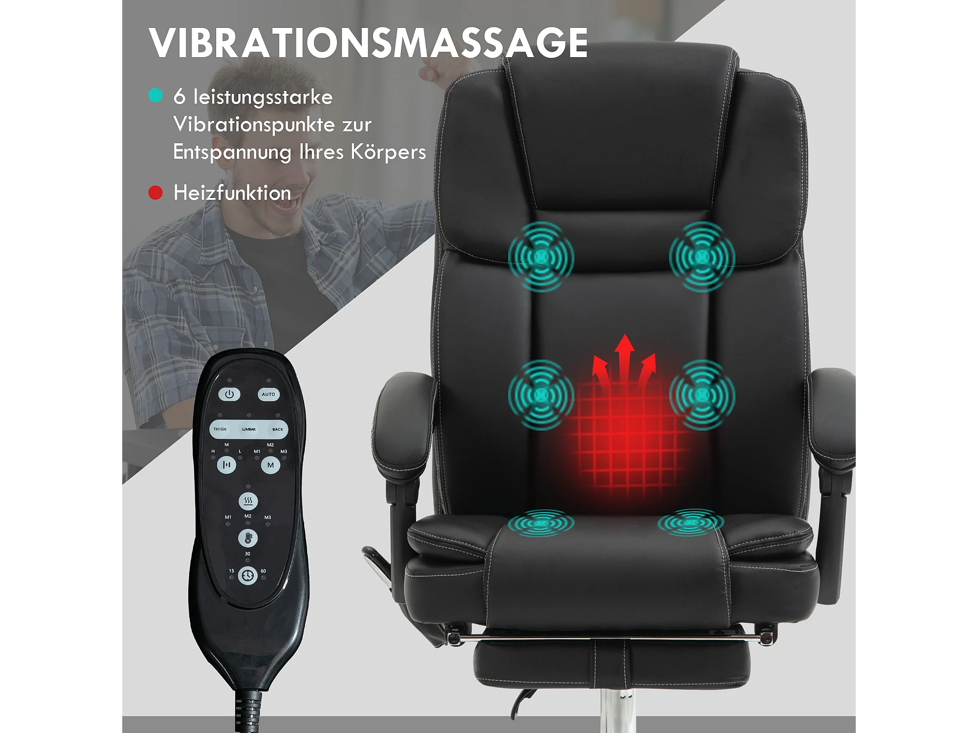 Fauteuil de bureau ergonomique avec massage, fonction chauffage et inclinaison, cuir synthétique, noir (66x67x118-126 cm)