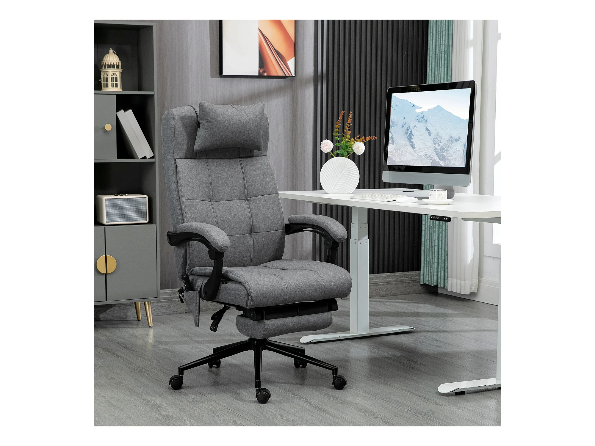 Fauteuil de bureau ergonomique avec massage, réglable en hauteur, avec chauffe-lombaire et repose-pieds, tissu polyester, gris (66x76x112-120 cm)