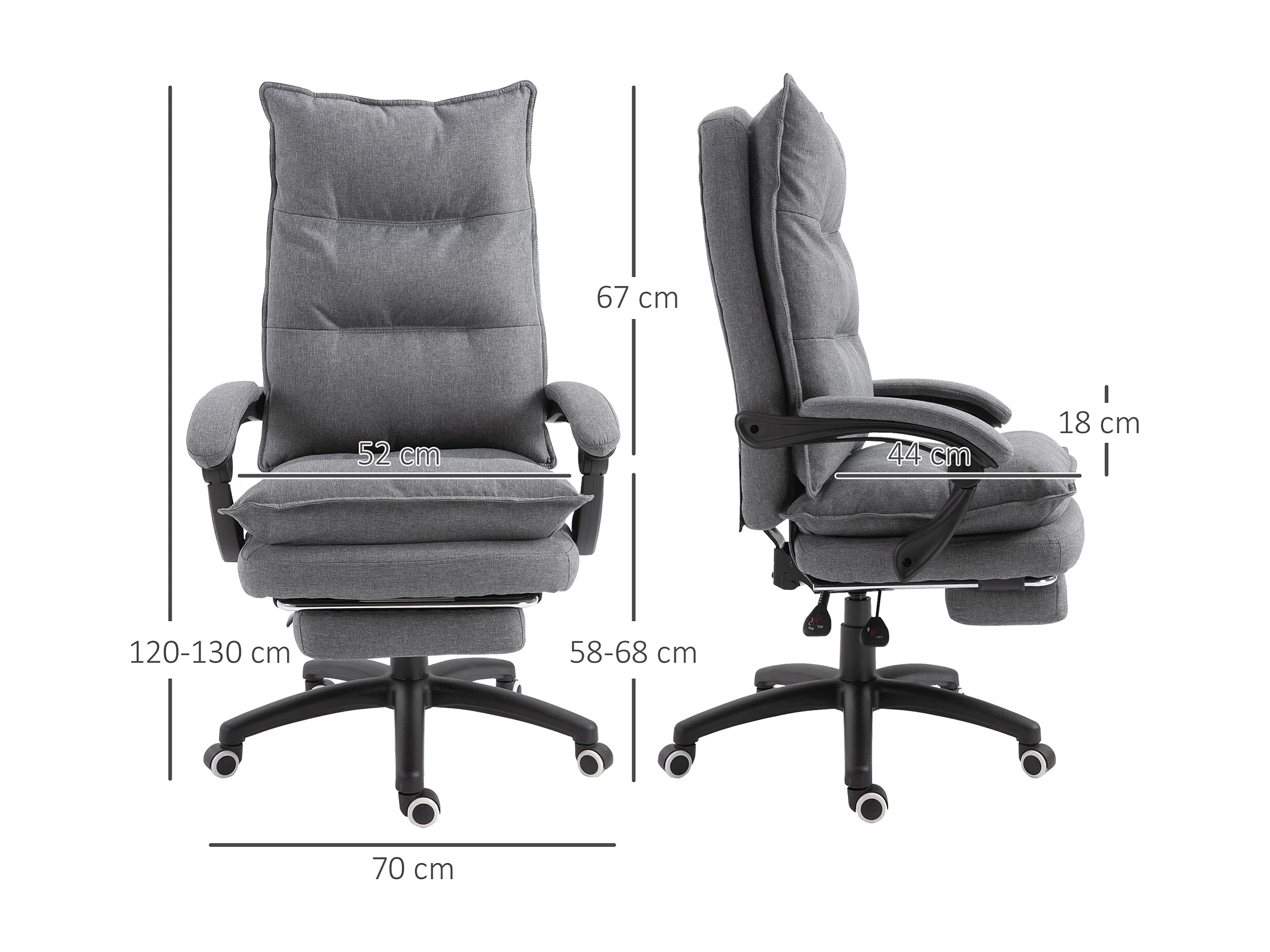 Fauteuil de bureau ergonomique avec massage, repose-pieds escamotable, polyester, gris (70x62x130cm)