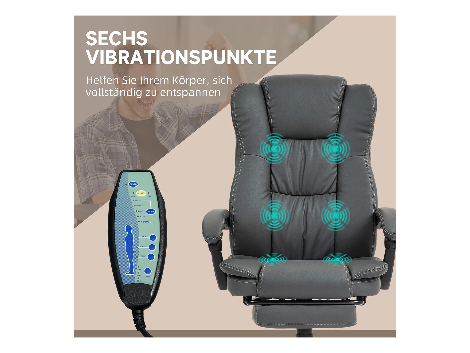 Fauteuil de bureau ergonomique avec massage, repose-pieds escamotable, simili cuir, gris foncé (68.5x68.5x113-121cm)