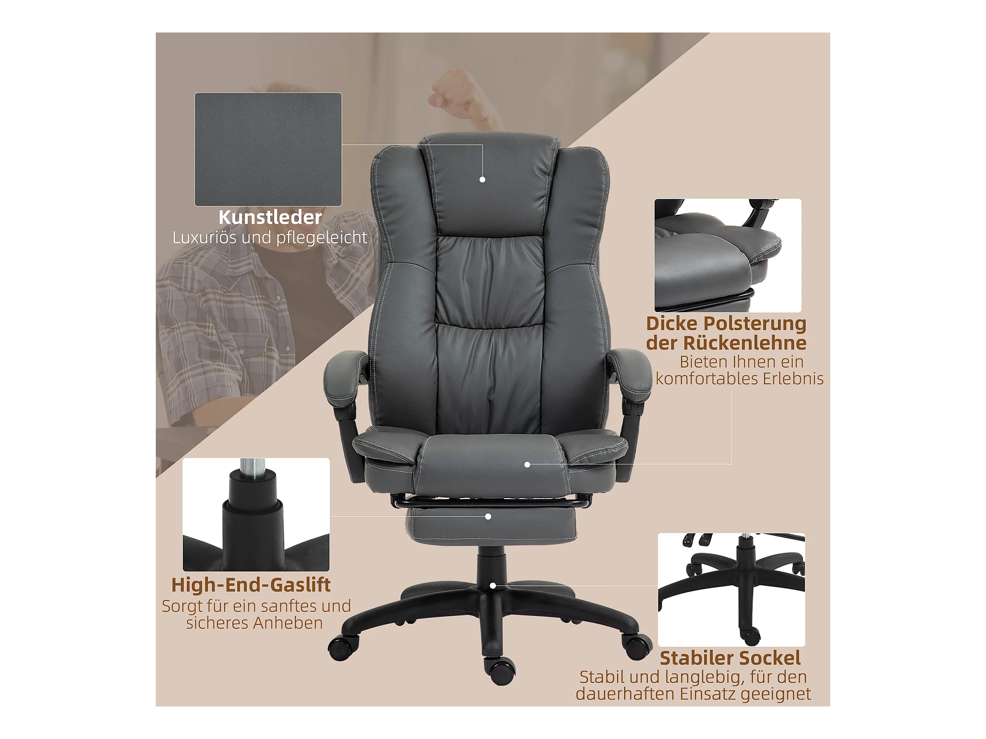 Fauteuil de bureau ergonomique avec repose-pieds, simili cuir, réglable, gris foncé (66x72x122-130cm)