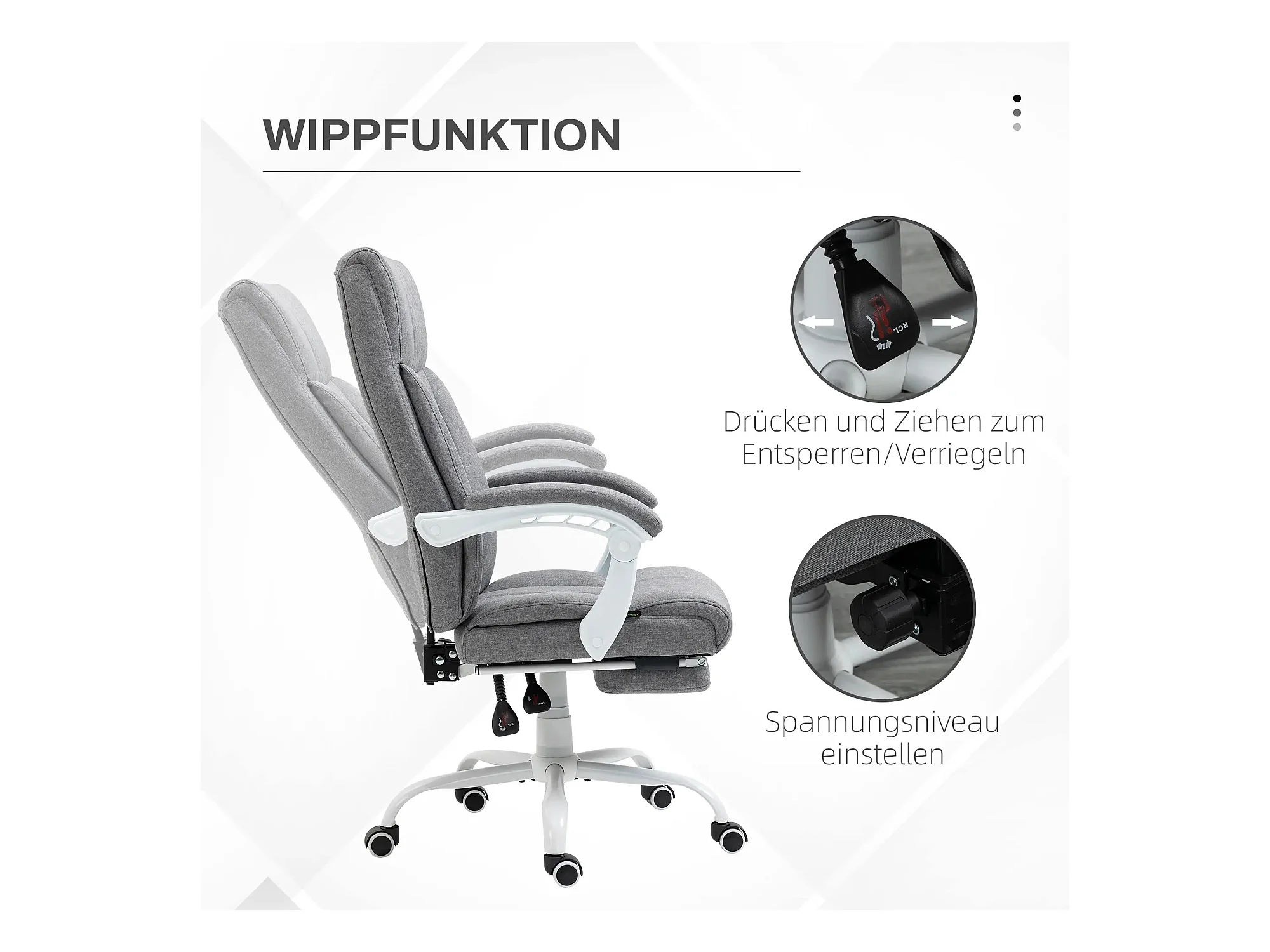 Fauteuil de Bureau avec Massage et Chauffage, Ergonomique, 6 Points de Massage, Repose-Pieds, Tissu, Gris (65x70x119 cm)