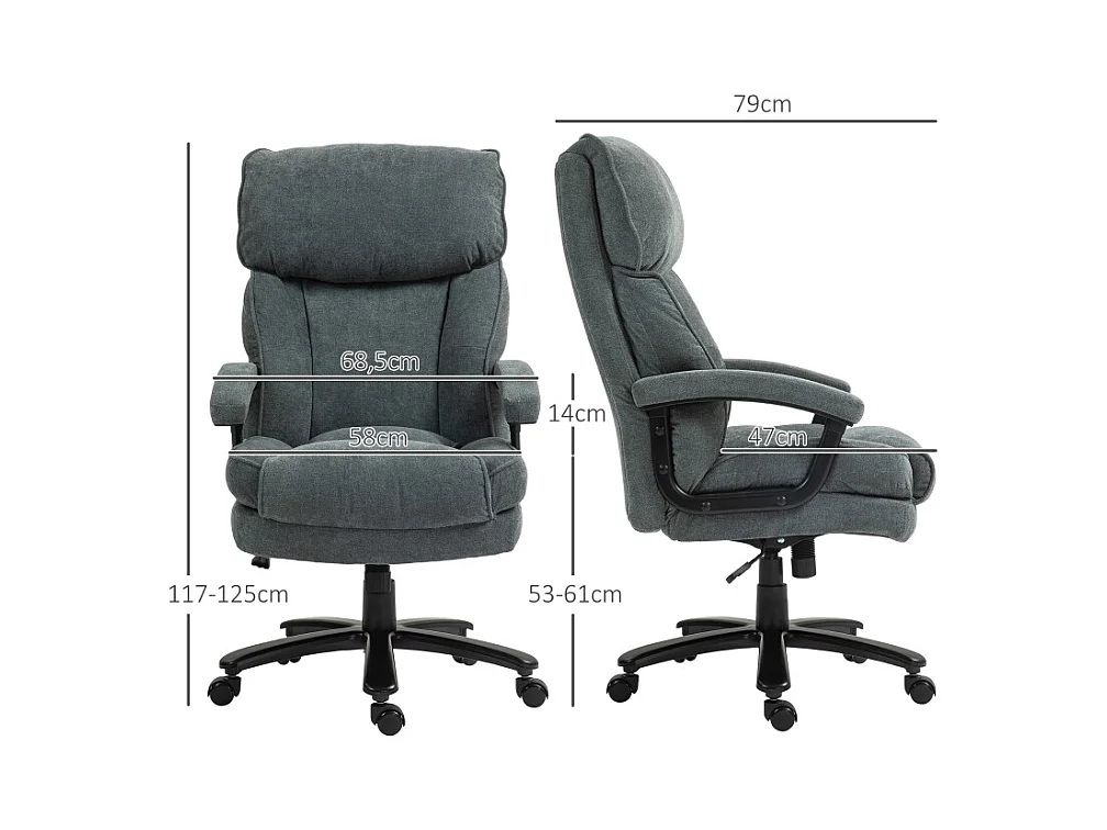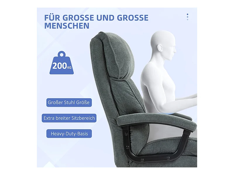 Fauteuil de bureau ergonomique grand, supporte jusqu'à 200 kg, structure solide, revêtement doux gris, idéal pour le bureau ou la maison