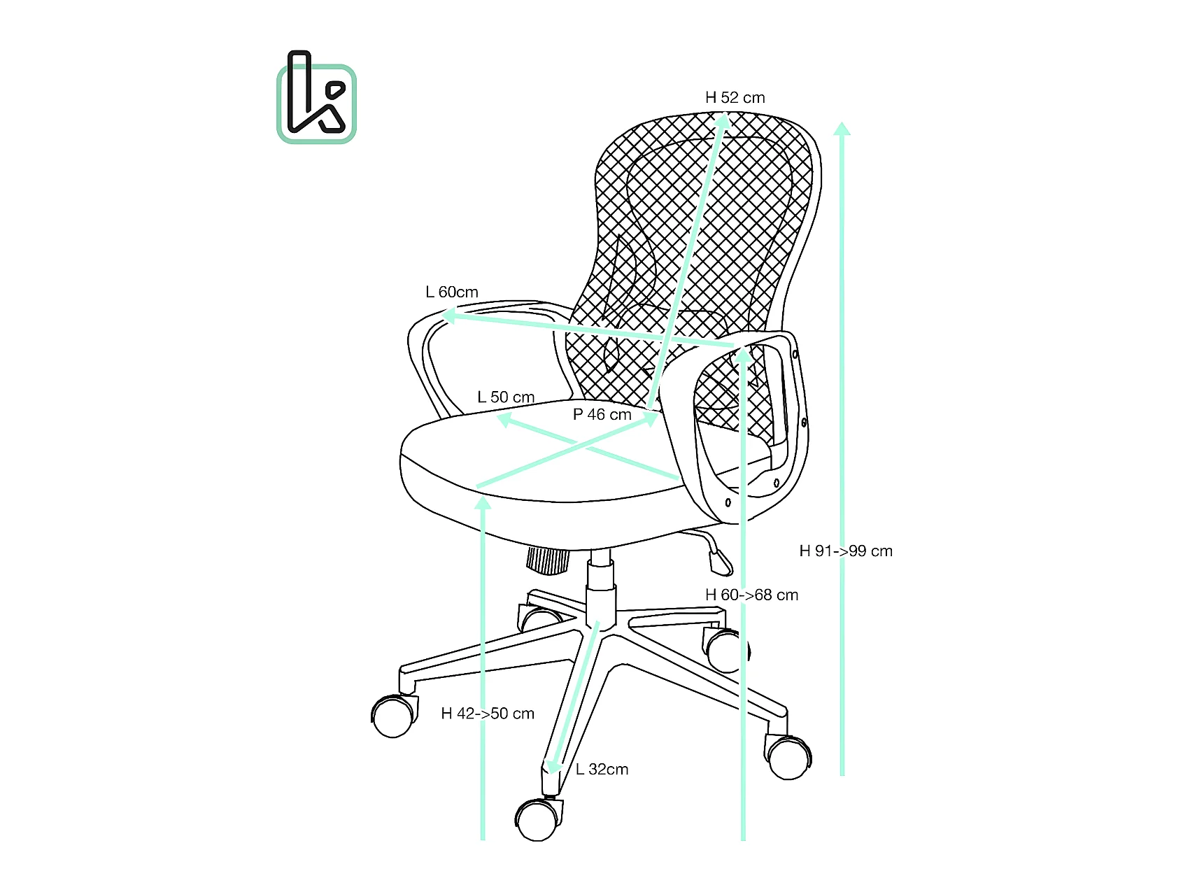 Chaise de bureau - Pivotante et réglable en hauteur - Tissu et résille - Noir - KORUS