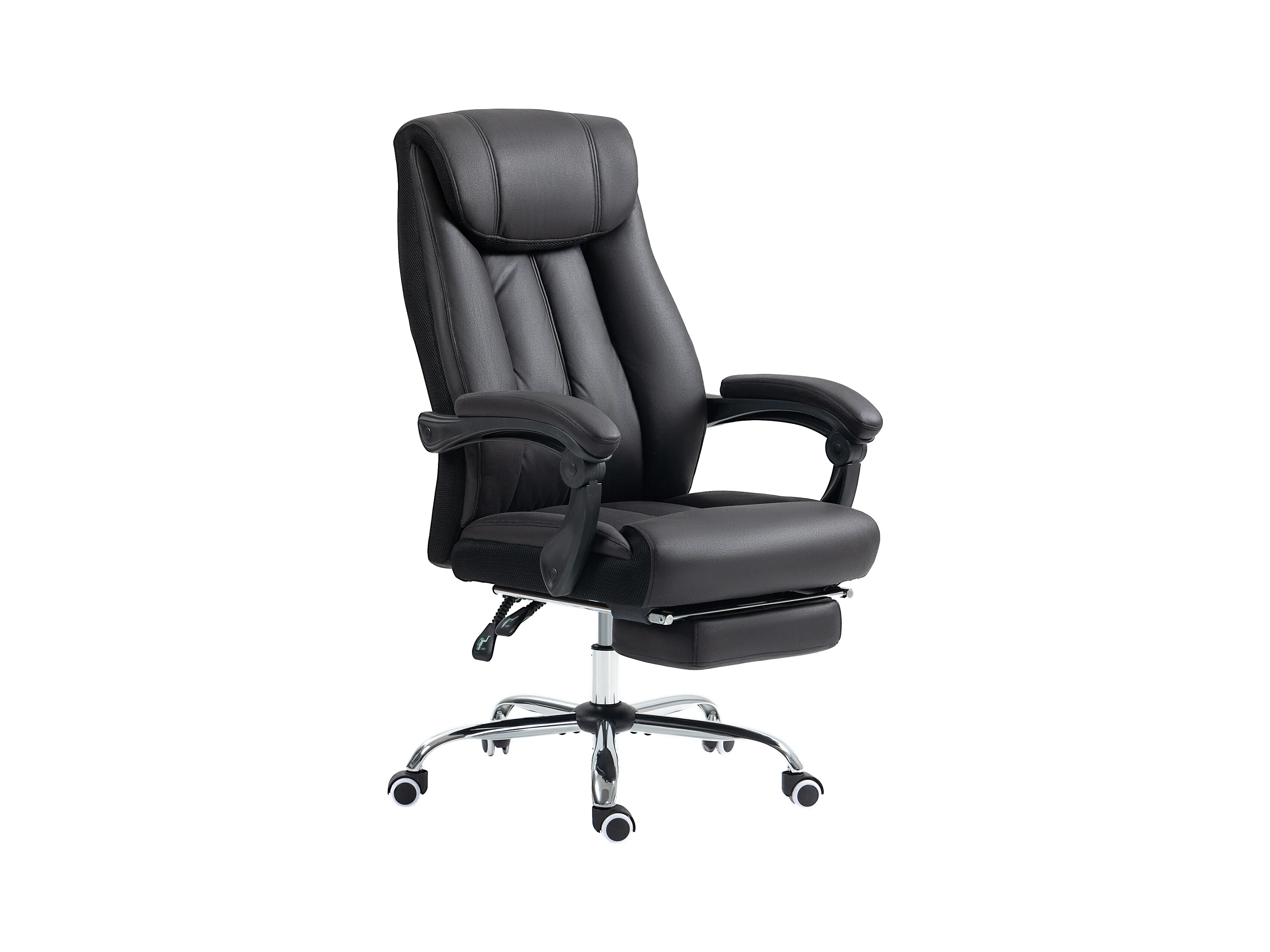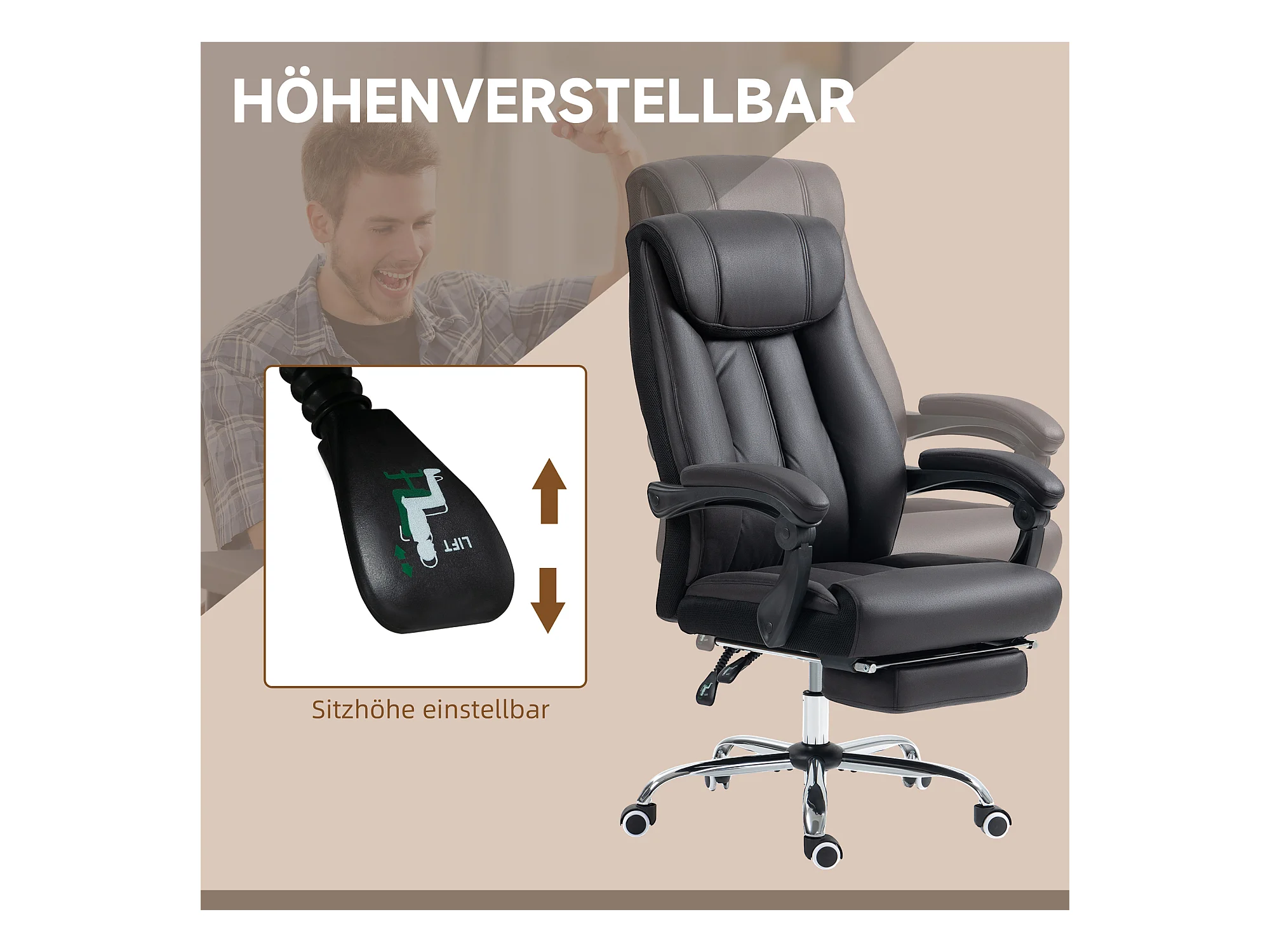 Chaise de bureau pivotante et réglable en hauteur avec repose-pieds, revêtement cuir synthétique noir, confortable pour travailler