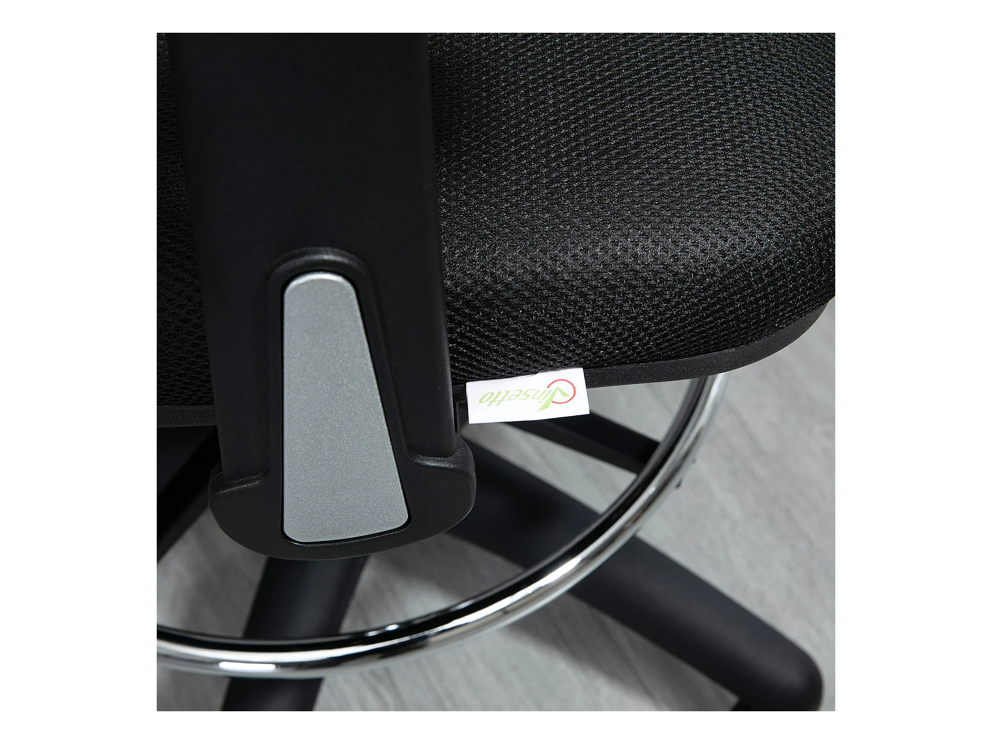 Fauteuil de bureau ergonomique type ordinateur, réglable, avec accoudoirs et repose-pieds, tissu mesh noir, pour bureau ou home office