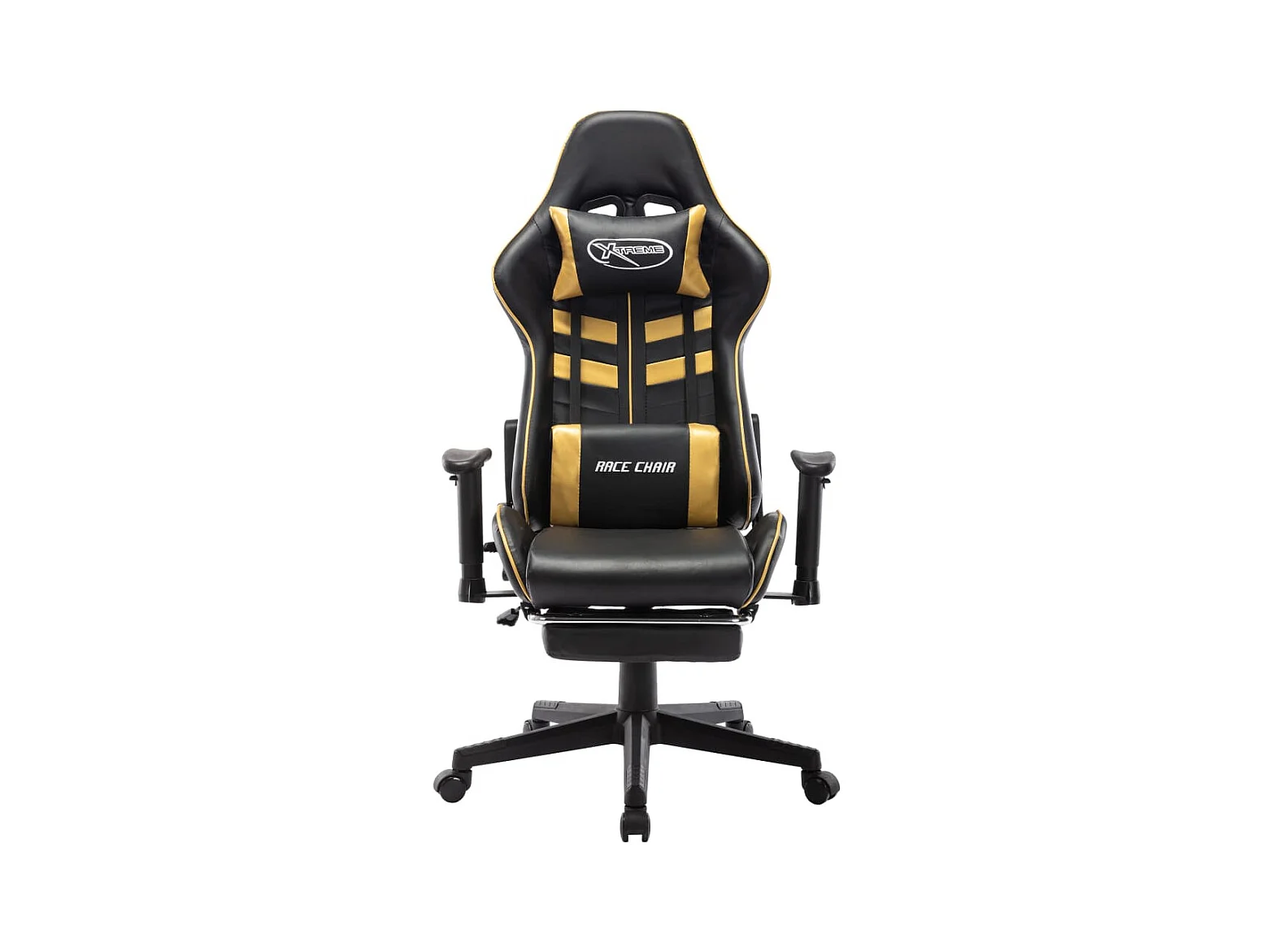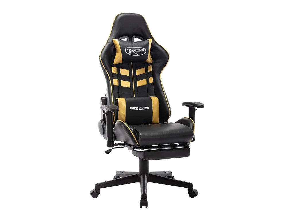 Chaise gaming avec repose-pied Noir et doré Cuir artificiel SEF66487