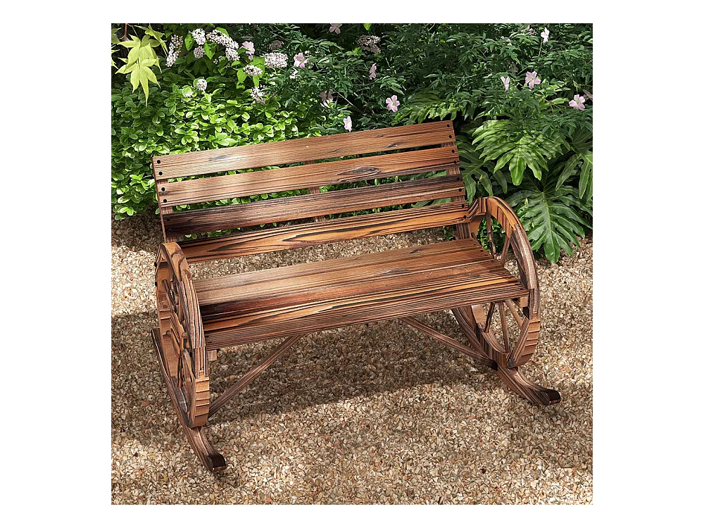 Banc de Jardin 3 Places Extérieur Cadre Métallique Style Ancien 127 x 63,5 x 89 cm Résistant aux Intempéries Charge 320kg