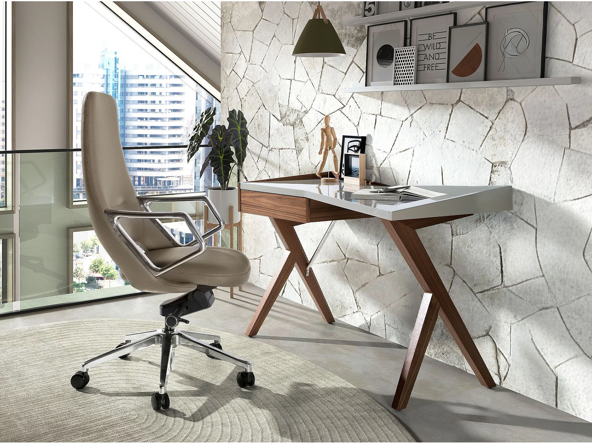 Fauteuil de bureau pivotant en similicuir gris 4217 ANGEL CERDA