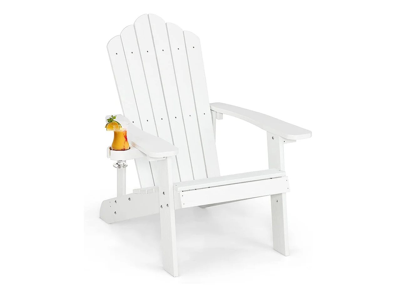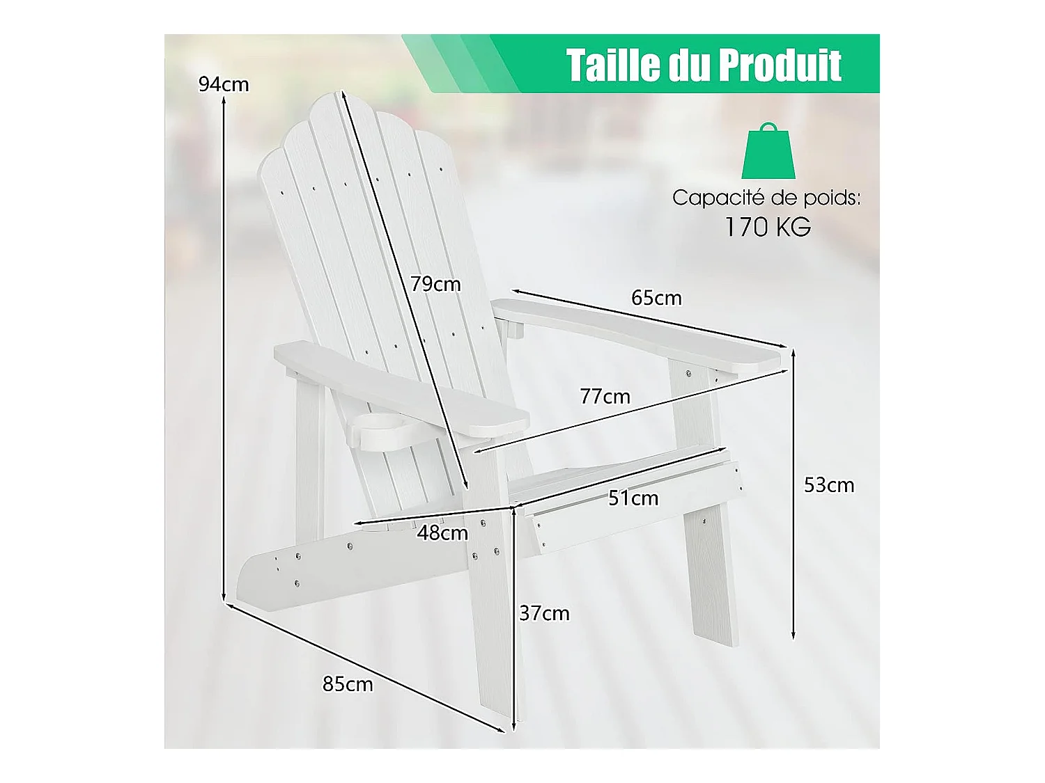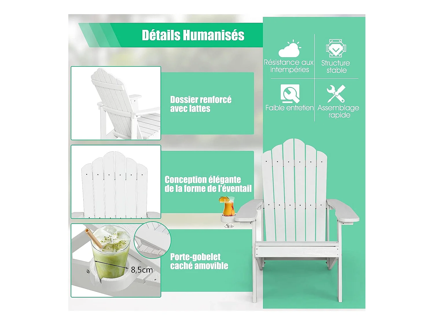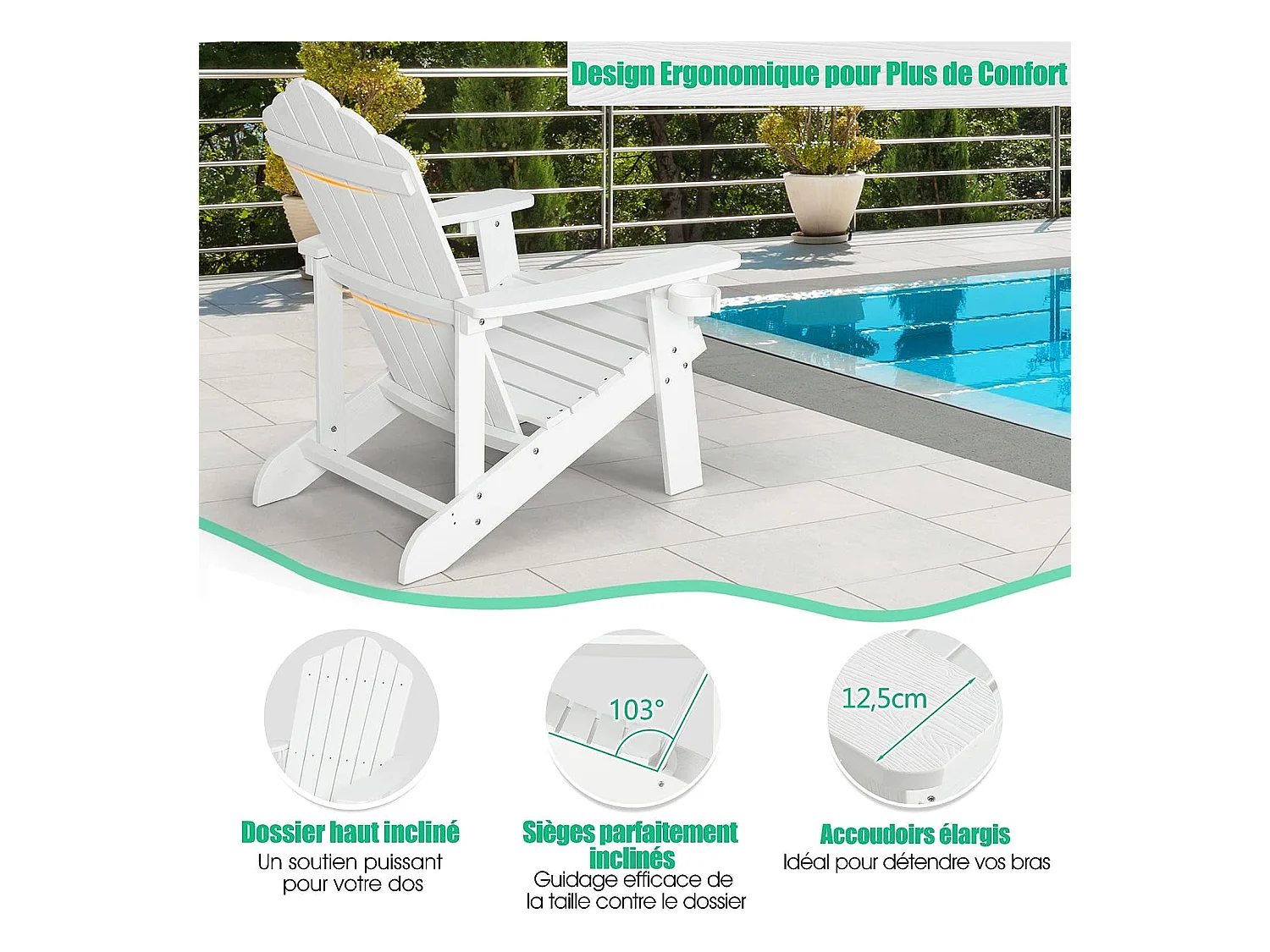 Fauteuil de Jardin Adirondack en HIPS Grain de Bois Réaliste, Chaise d'Extérieur Imperméable avec Porte-Gobelet Charge 170KG, pour Jardin Piscine Terrasse (Blanc)