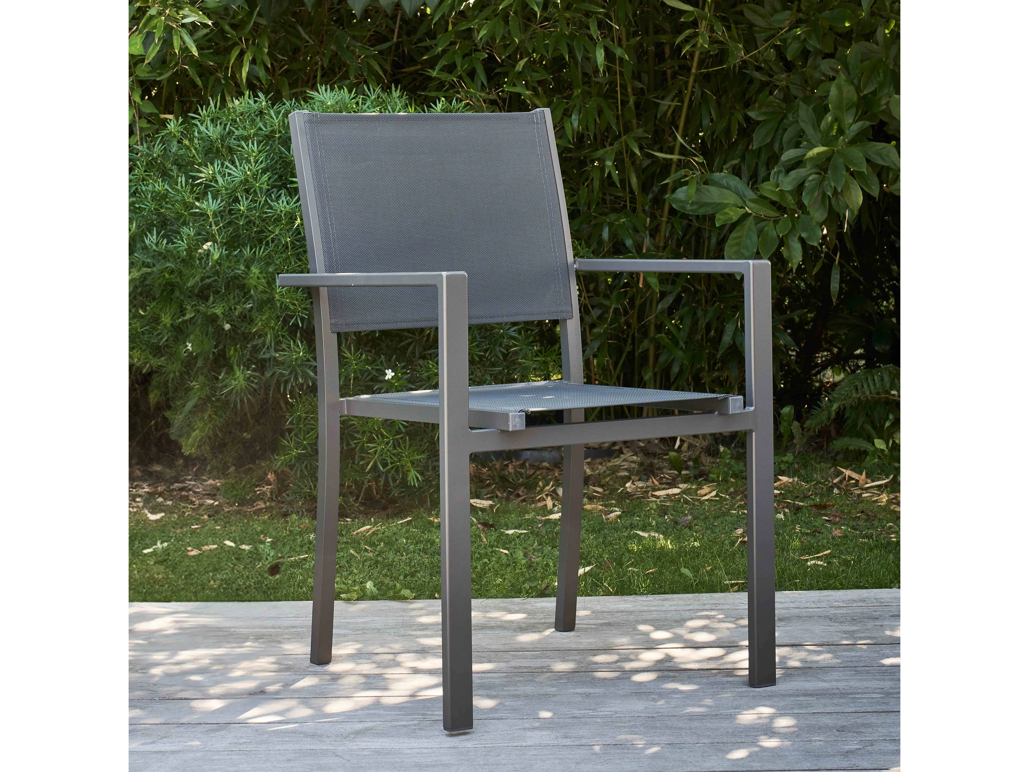 Lot de 2 fauteuils de jardin aluminium et textilène gris