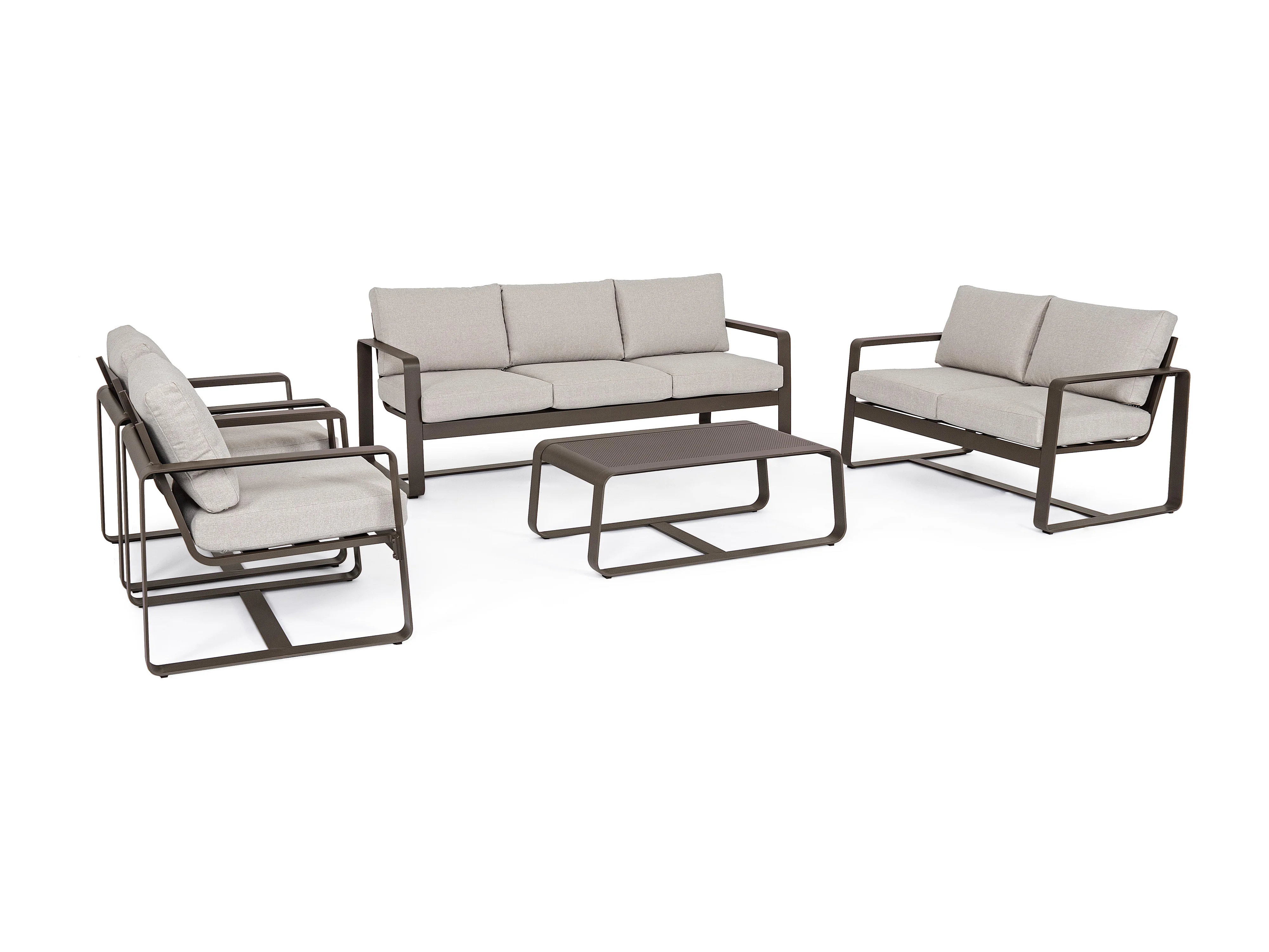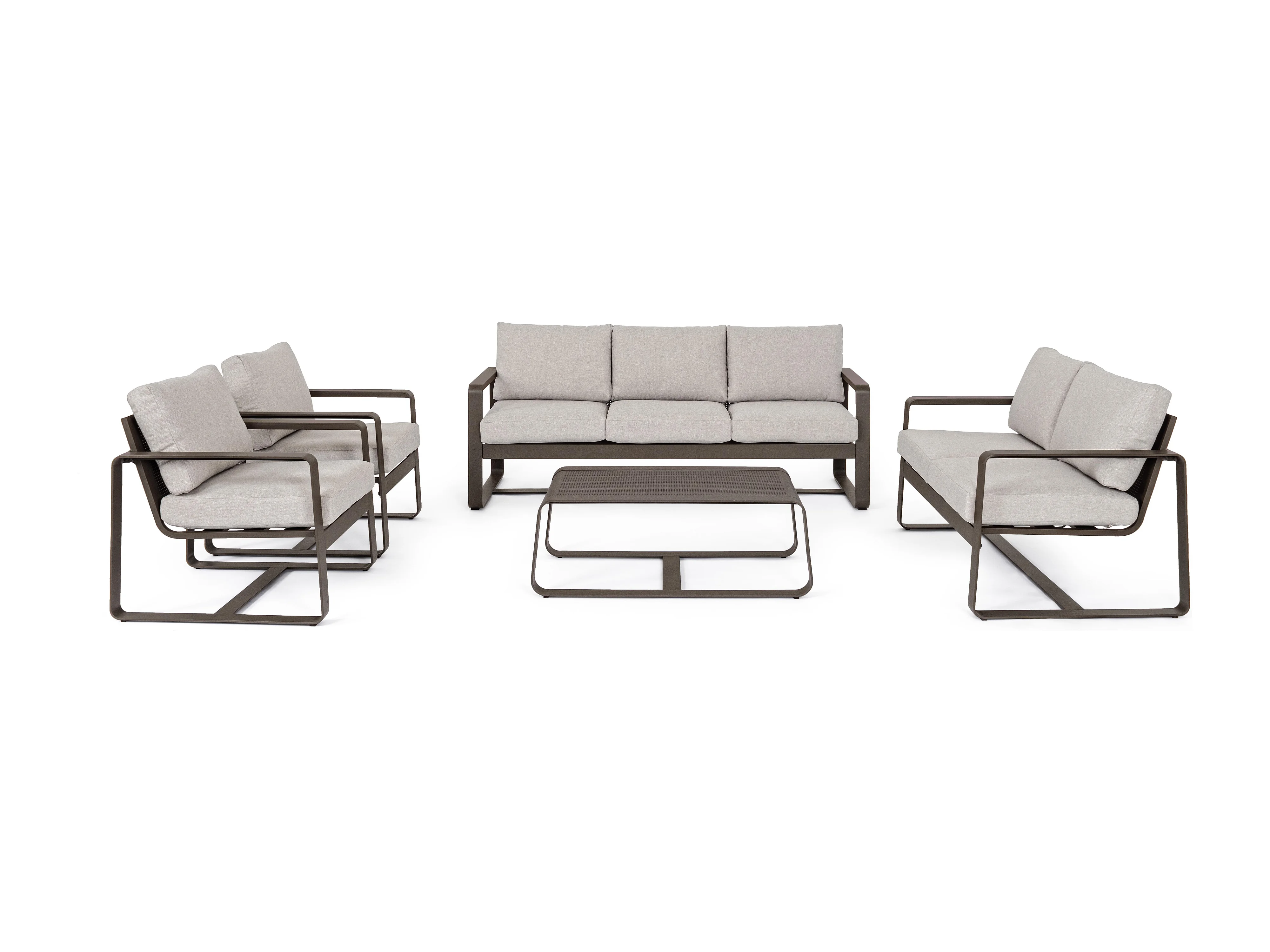 Fauteuil de jardin aluminium marron et coussin Masy - Lot de 2