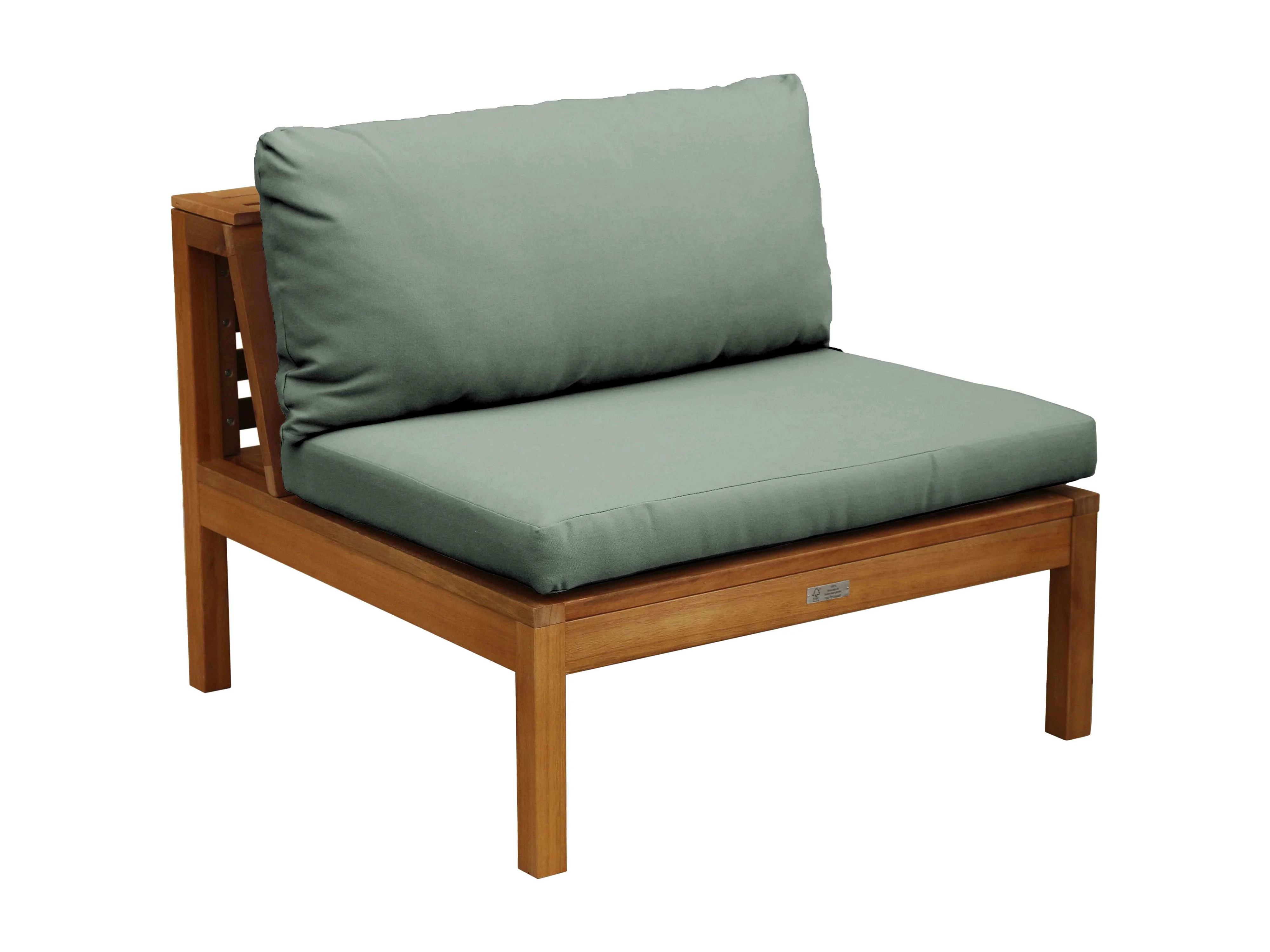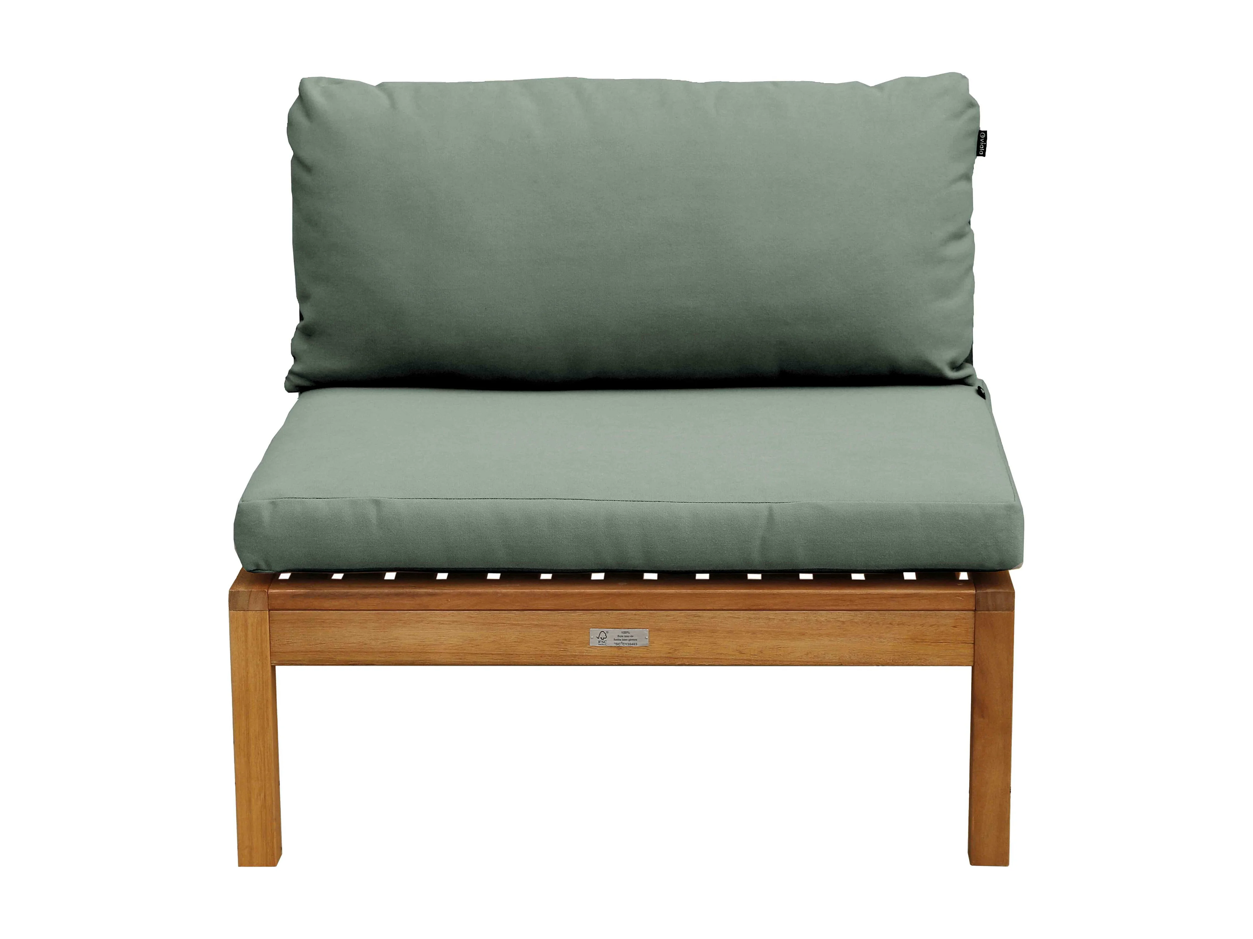 Fauteuil de jardin bas en bois d'eucalyptus vert sauge