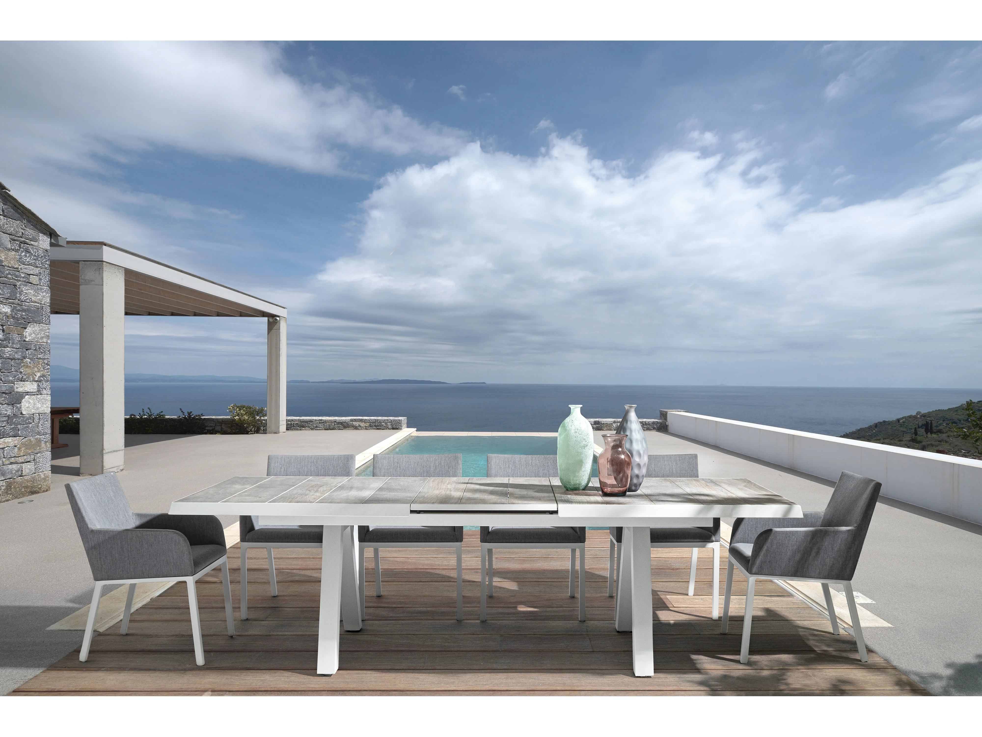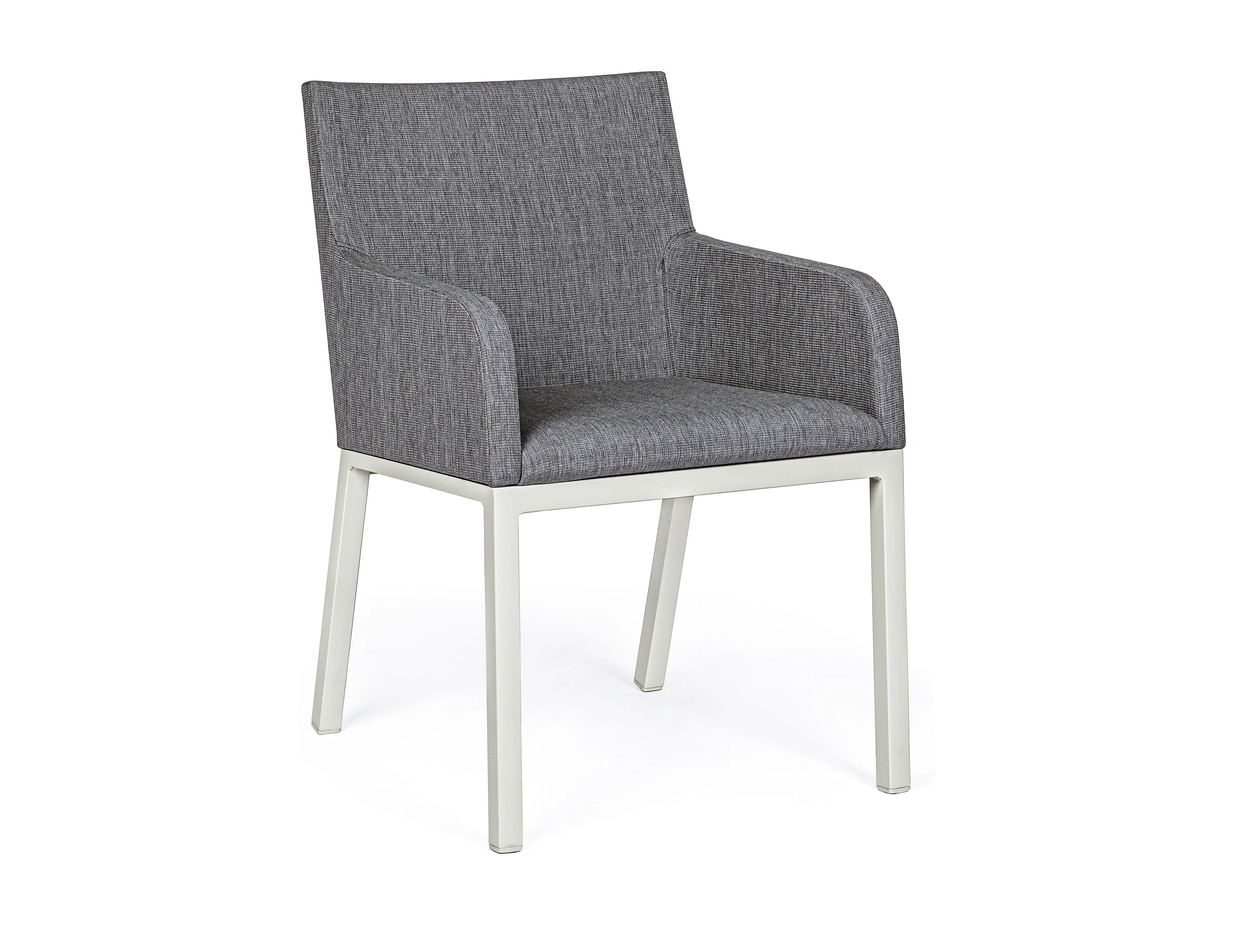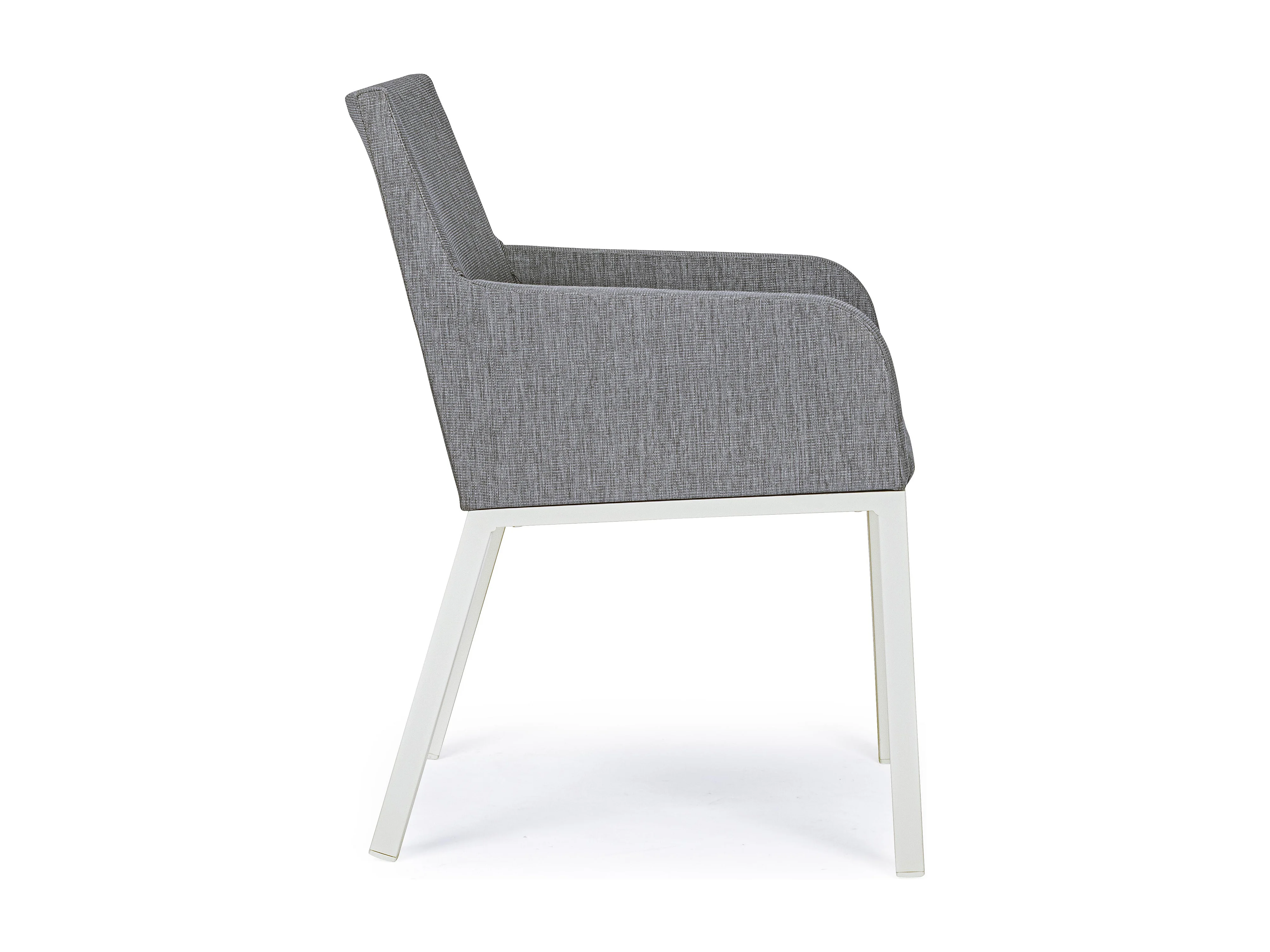 Chaise de jardin avec accoudoir aluminium blanc et tressage de cordes gris taupe Flora