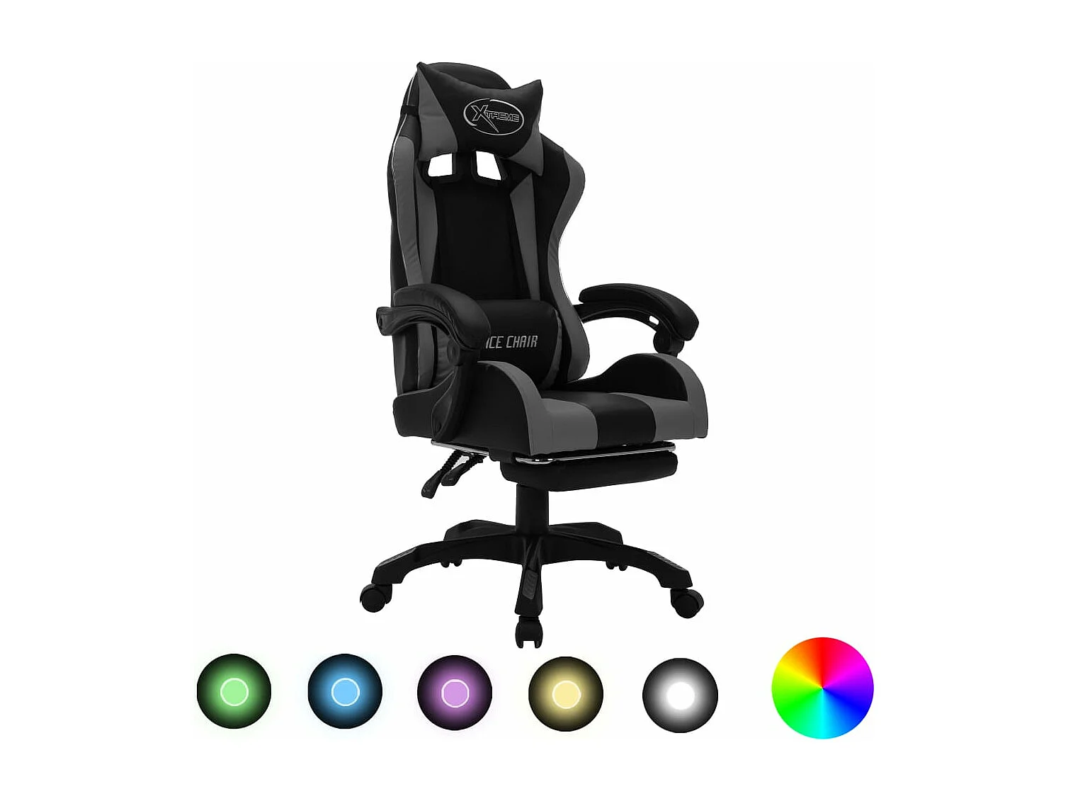 Fauteuil de jeux vidéo avec LED RVB Gris et noir Similicuir