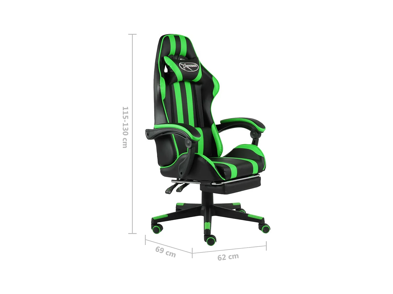 Chaise gaming avec repose-pied Vert PVC SEF97225