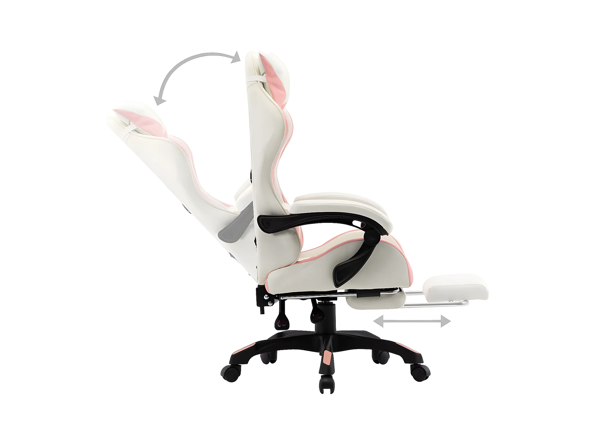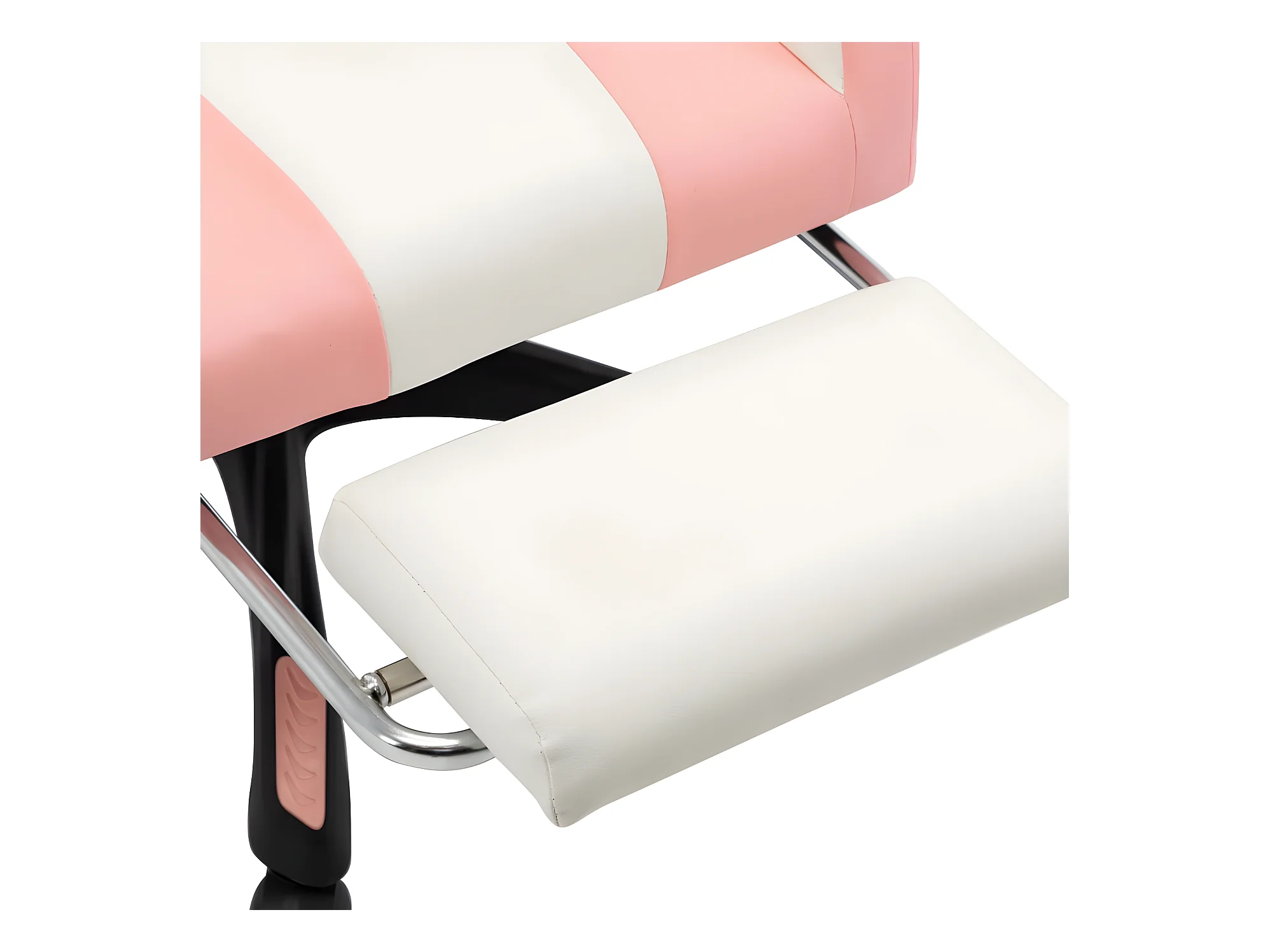 Chaise gamer et repose-pied Rose et blanc Similicuir REO94435