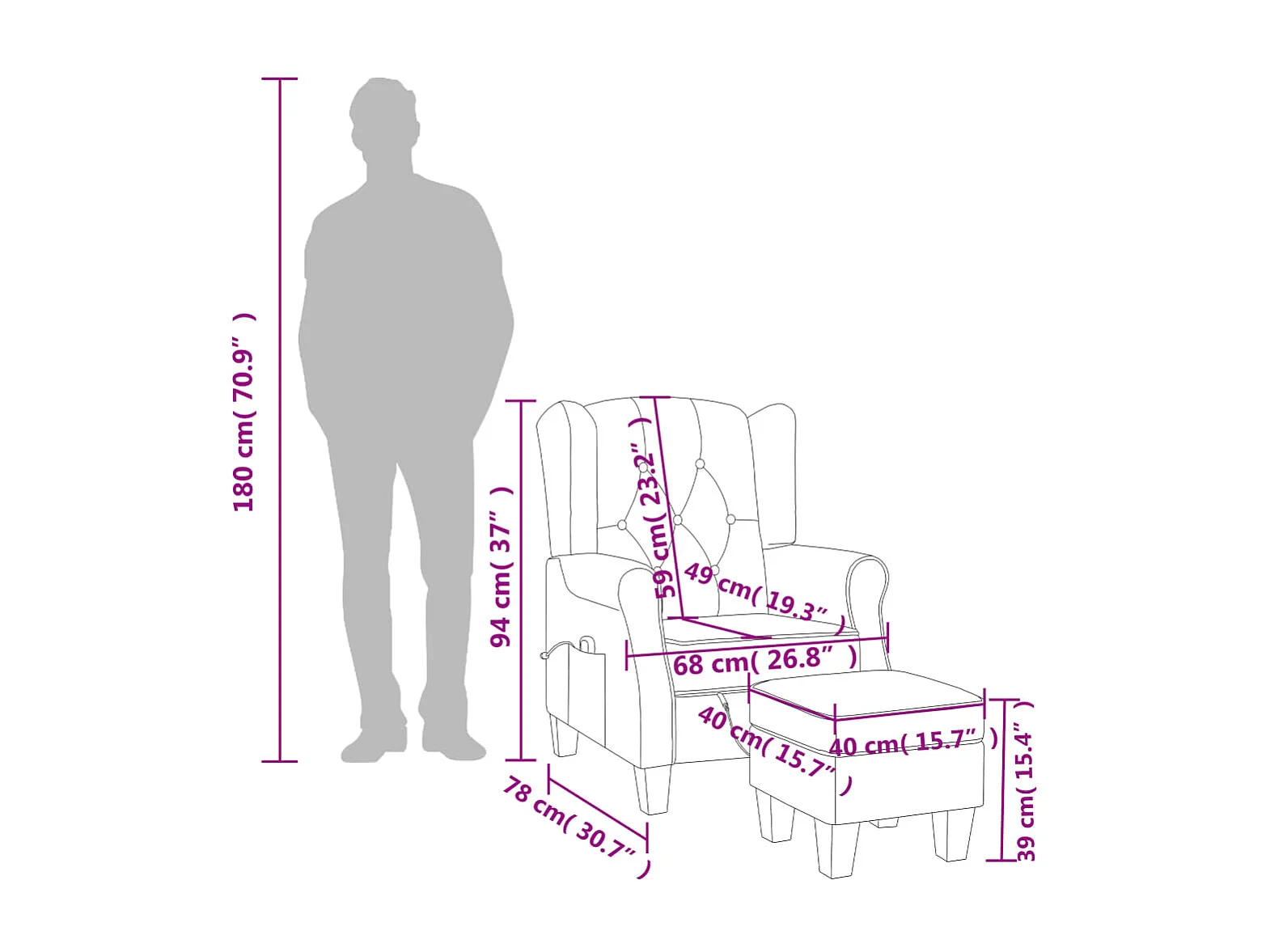 Fauteuil de massage avec repose-pied Gris foncé Tissu