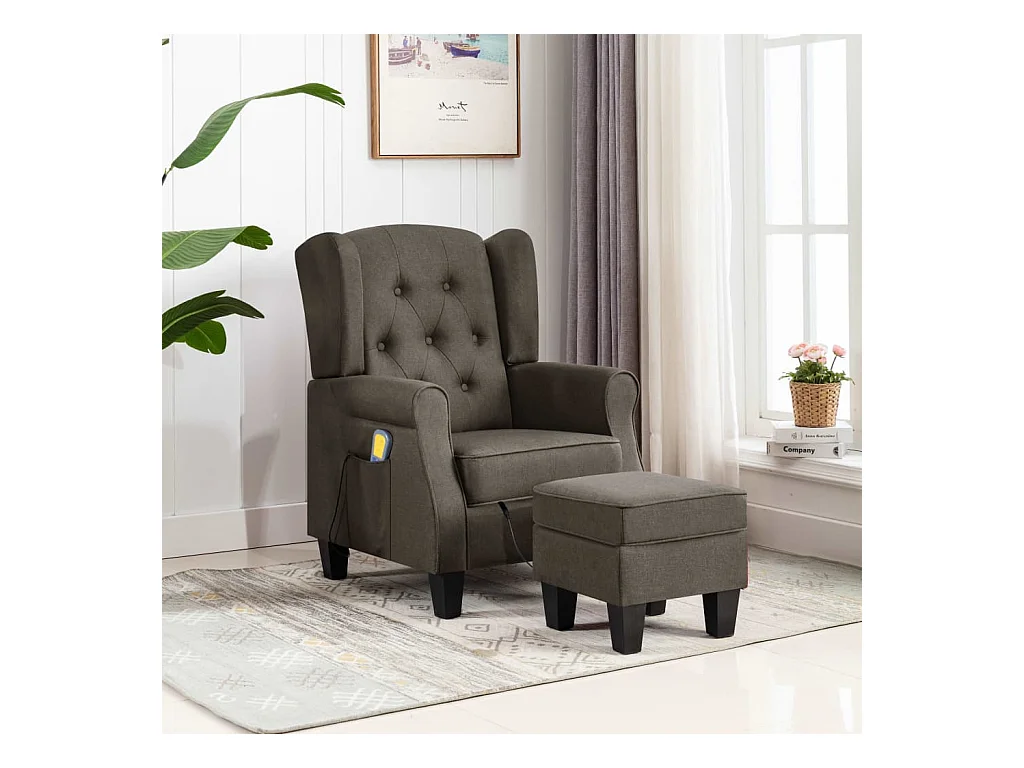 Fauteuil de massage avec repose-pied Taupe Tissu
