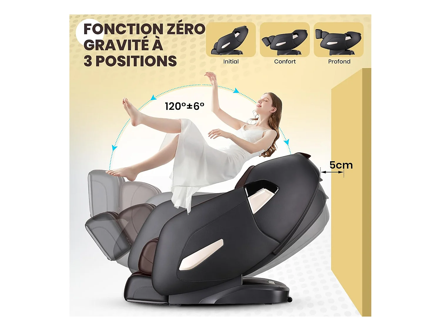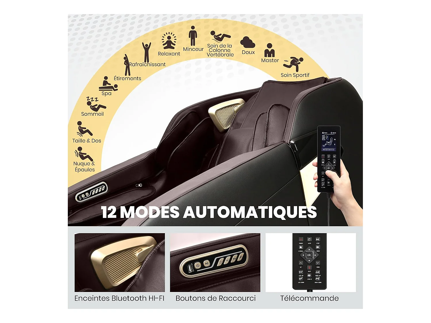 Fauteuil Massant SucceBuy Fauteuil de Massage 3D Shiatsu SL Rail Zero Gravity 10-18 modes Chauffage Haut-parleur Bluetooth 160 kg