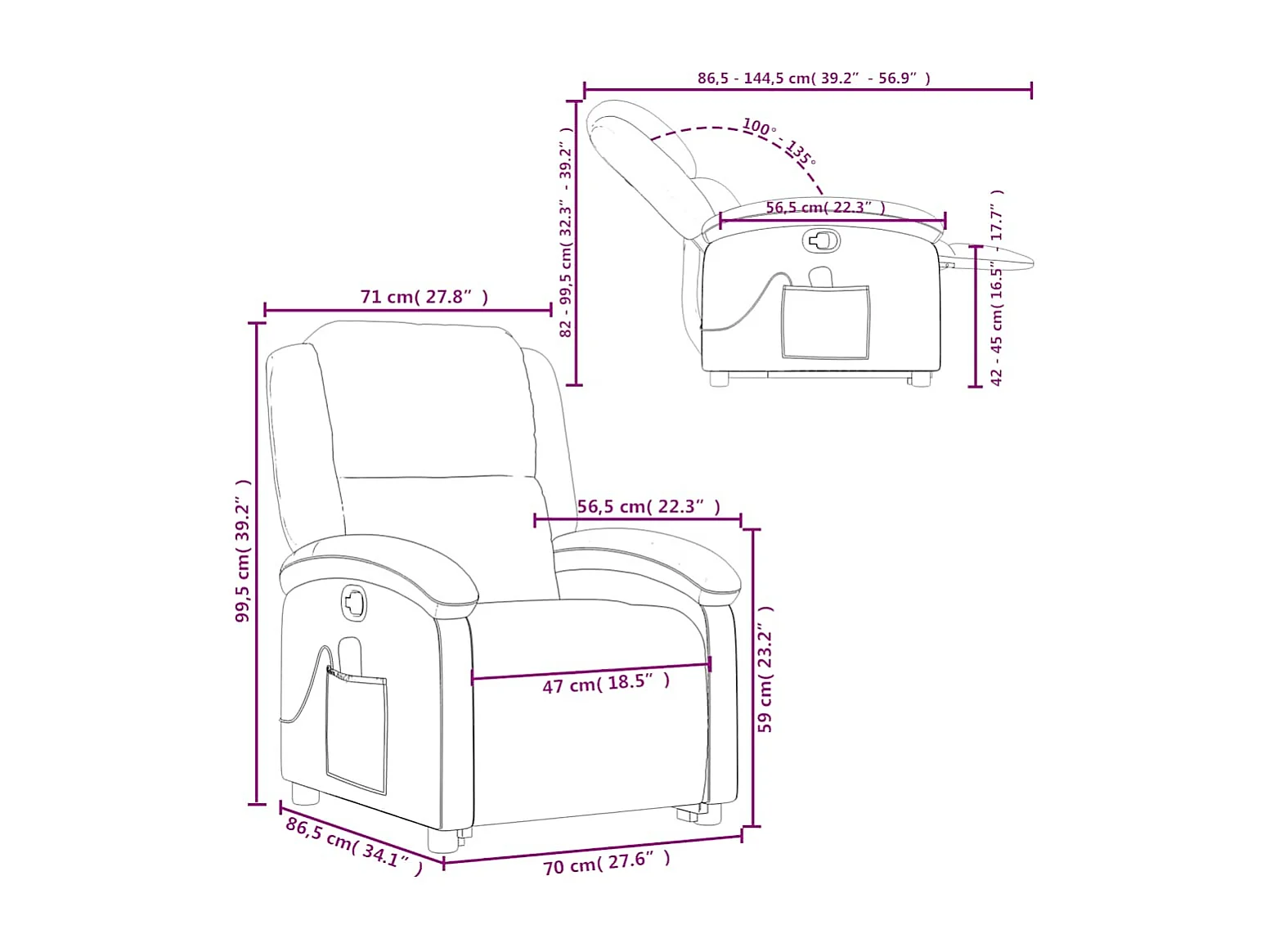 Fauteuil de massage inclinable Crème Velours