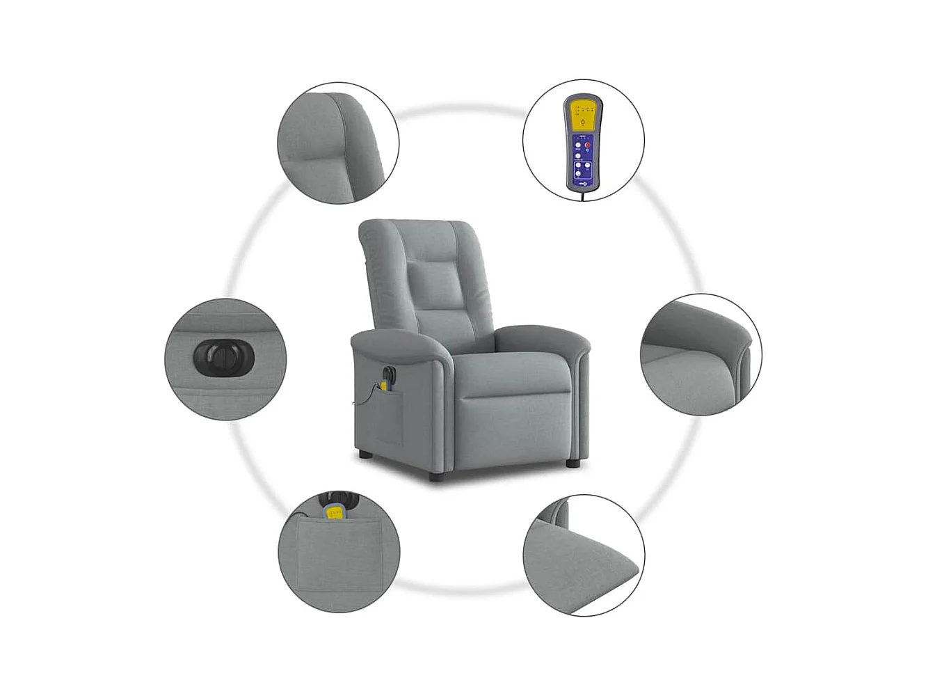 Fauteuil de massage inclinable électrique gris nuage tissu