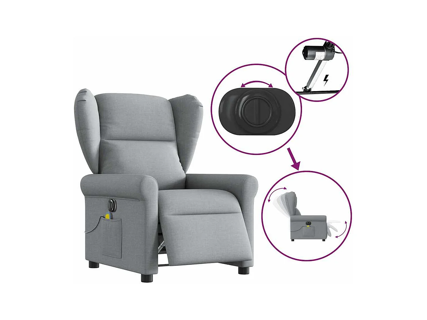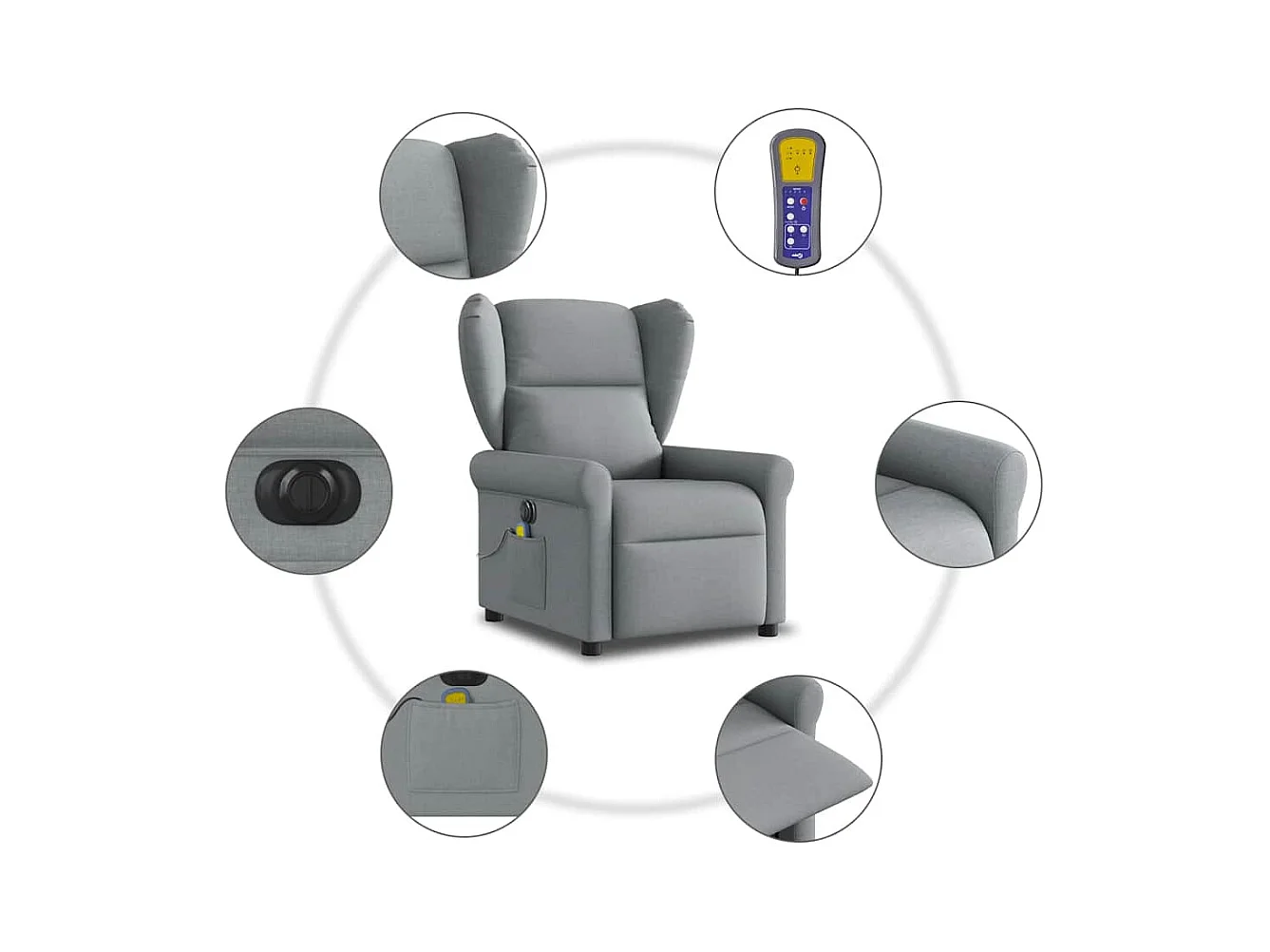 Fauteuil de massage inclinable électrique gris nuage tissu