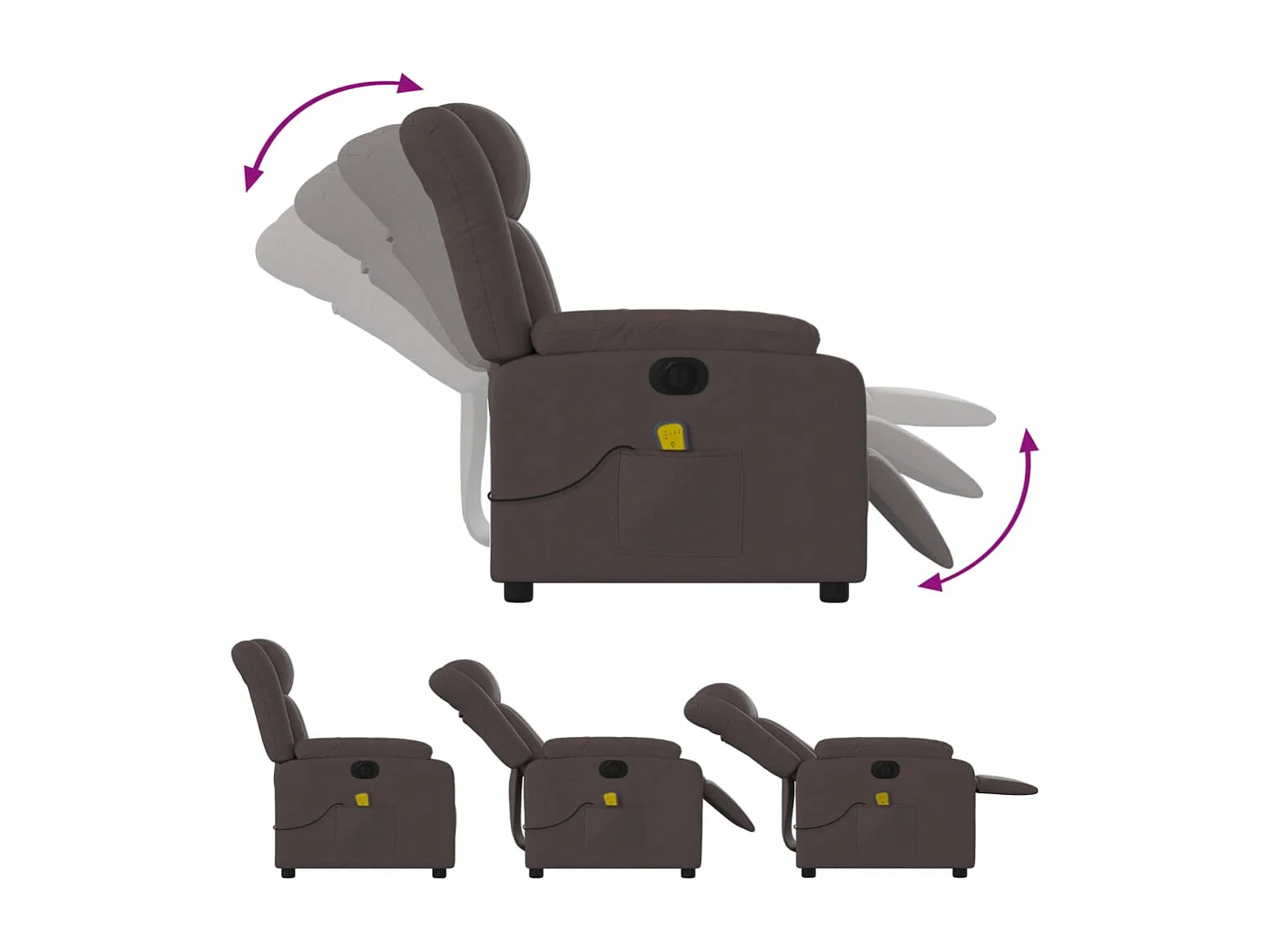 Fauteuil de massage inclinable électrique Marron foncé Tissu