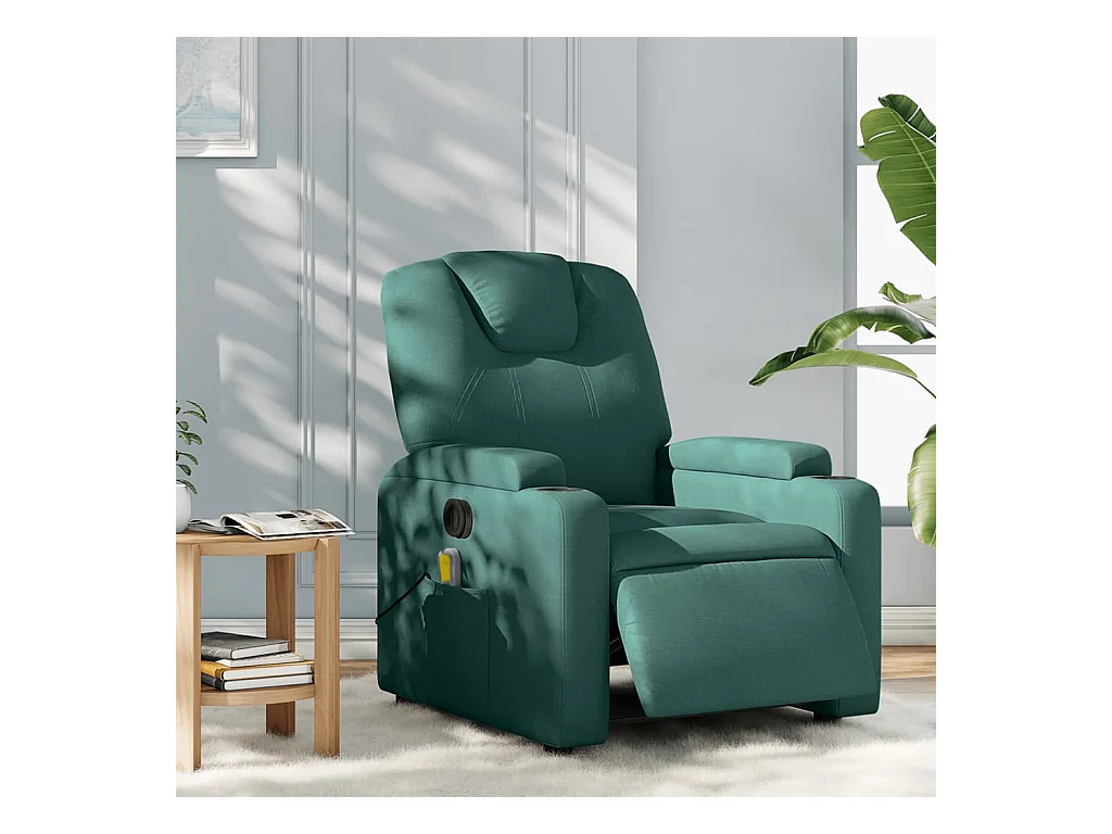 Fauteuil de massage inclinable électrique Vert foncé Tissu