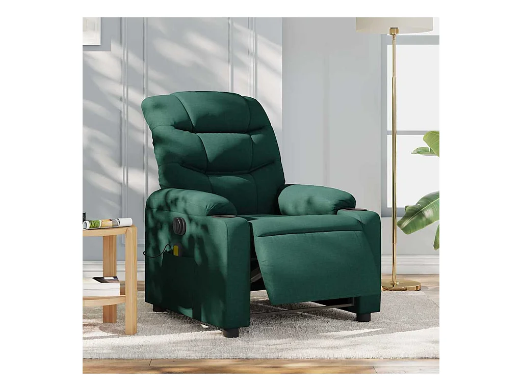 Fauteuil de massage inclinable électrique Vert foncé Tissu