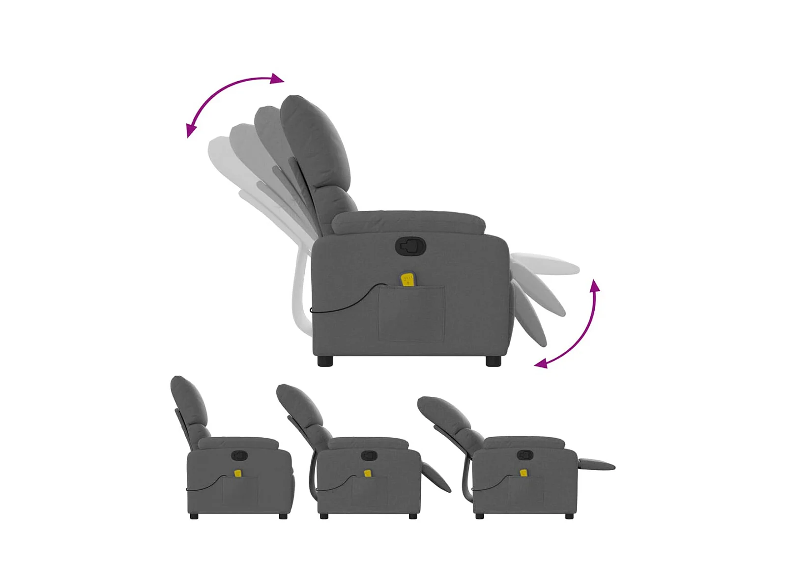Fauteuil de massage inclinable et repose-pieds gris foncé tissu