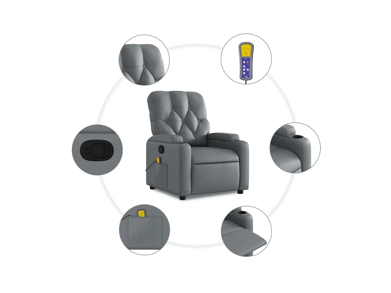 Fauteuil inclinable de massage et repose-pied gris clair tissu