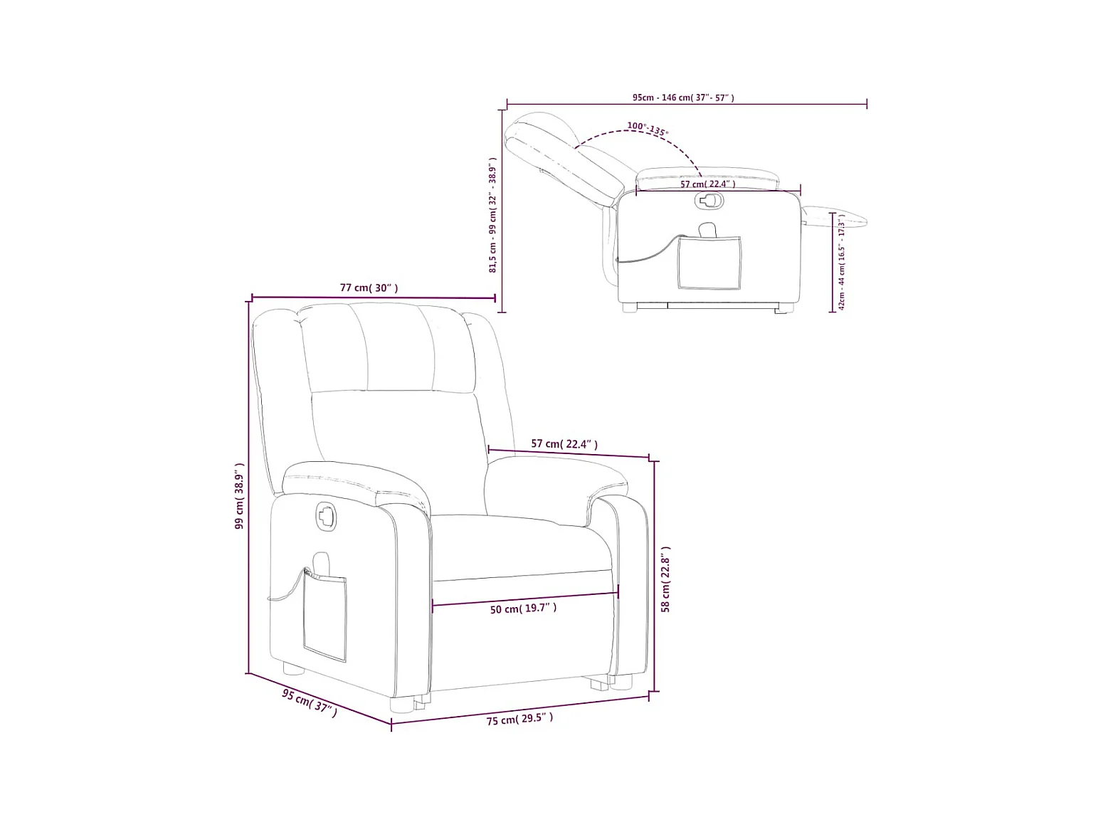 Fauteuil massant inclinable électrique Marron foncé Tissu
