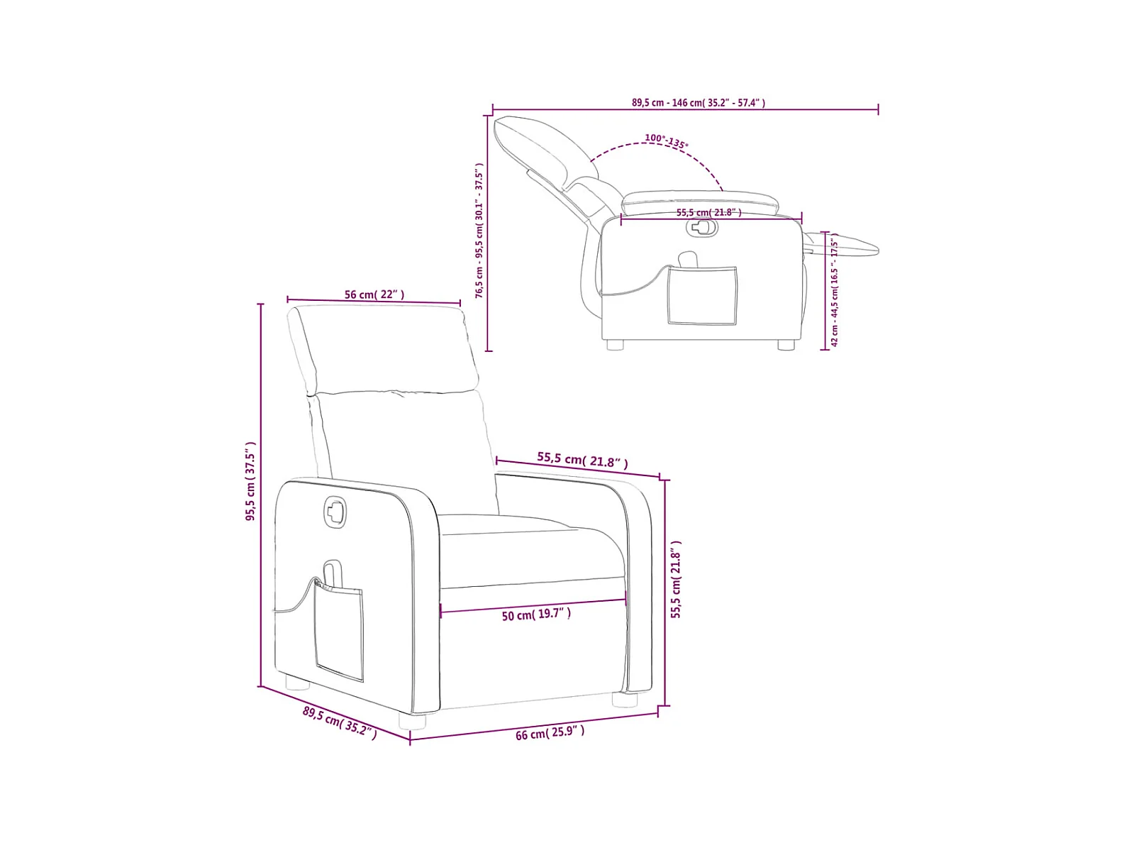 Fauteuil inclinable électrique taupe tissu