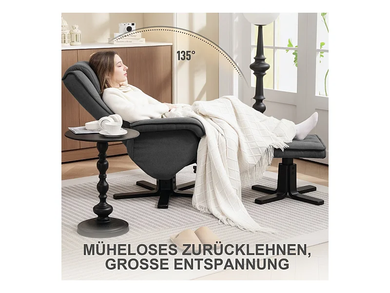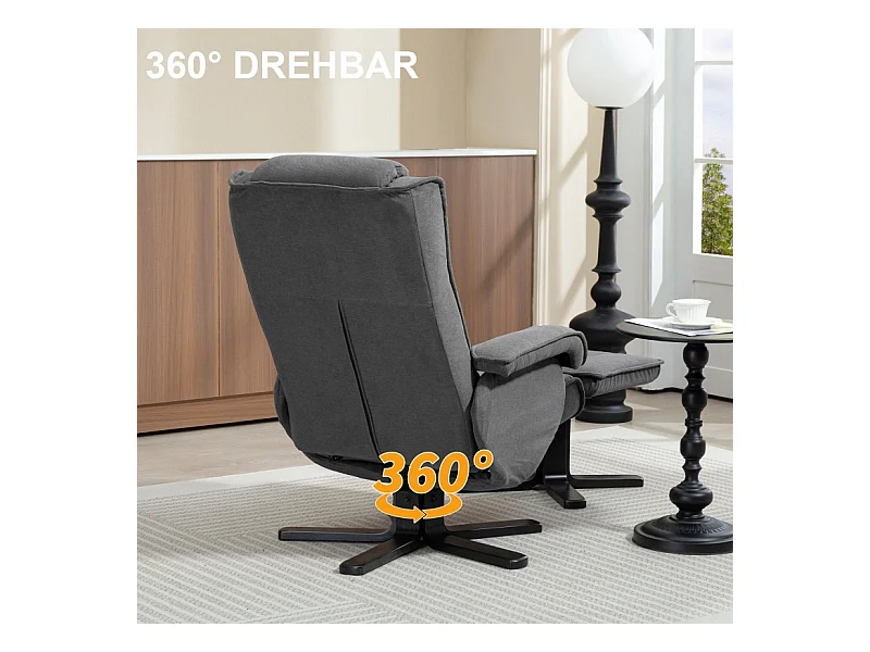 Fauteuil avec fonction inclinable, pied de soutien, Tissu lin, Gris (89x101x105 cm)