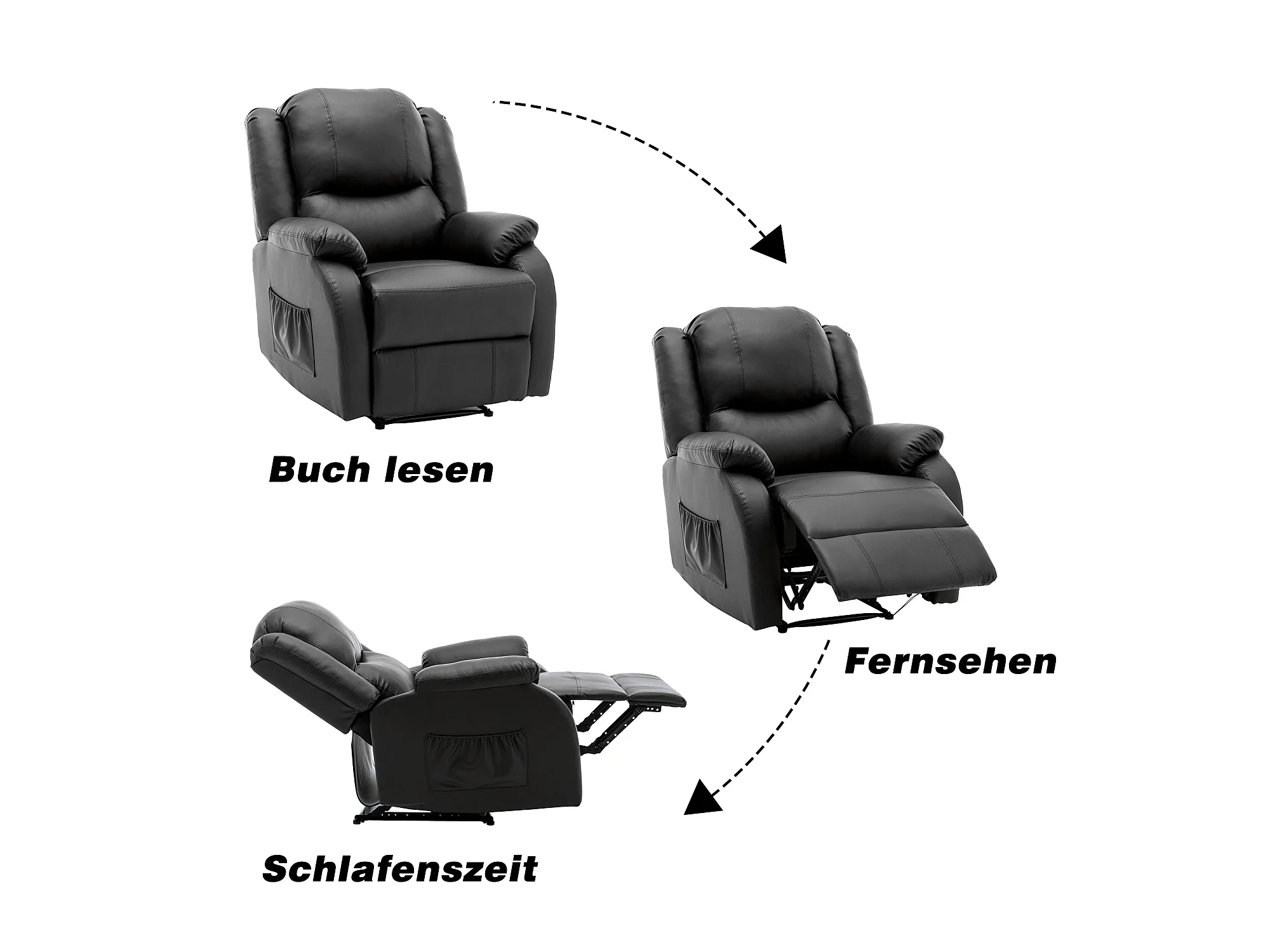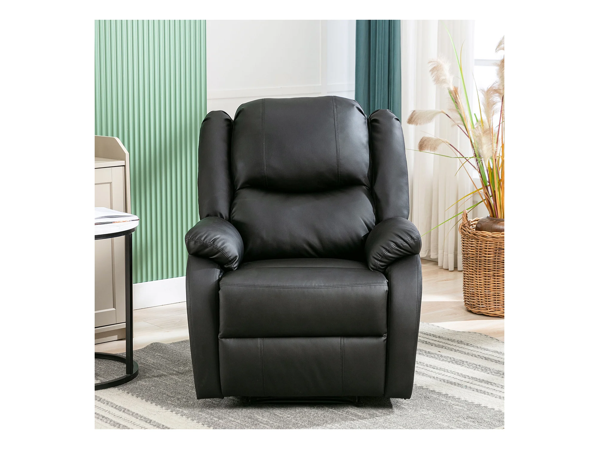 Fauteuil de relaxation inclinable avec repose-pied ajustable à main revêtement simili noir