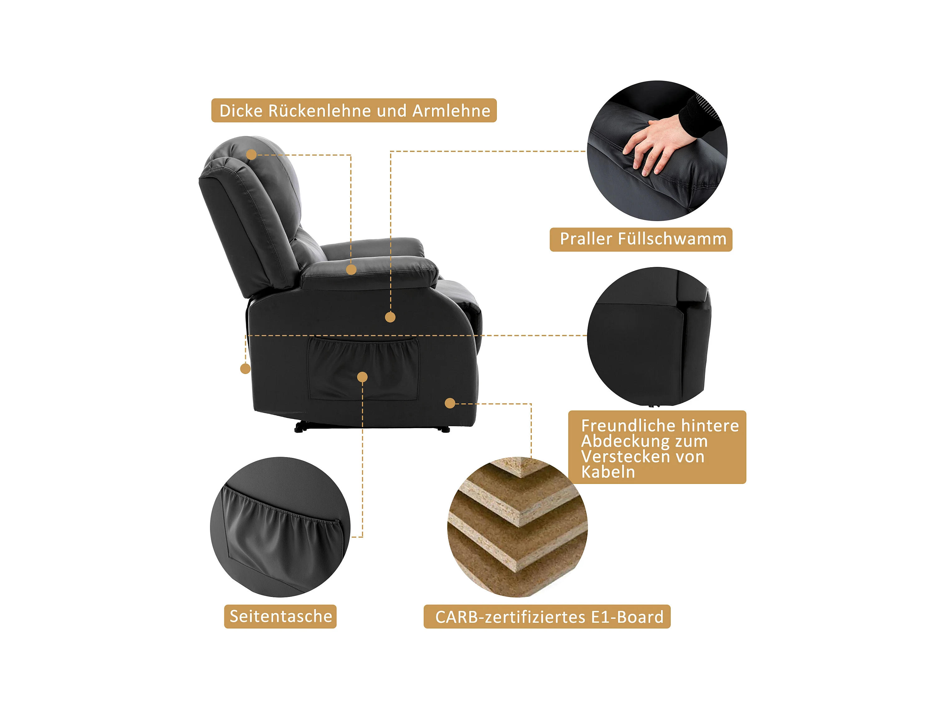 Fauteuil inclinable Noir Similicuir REO99132