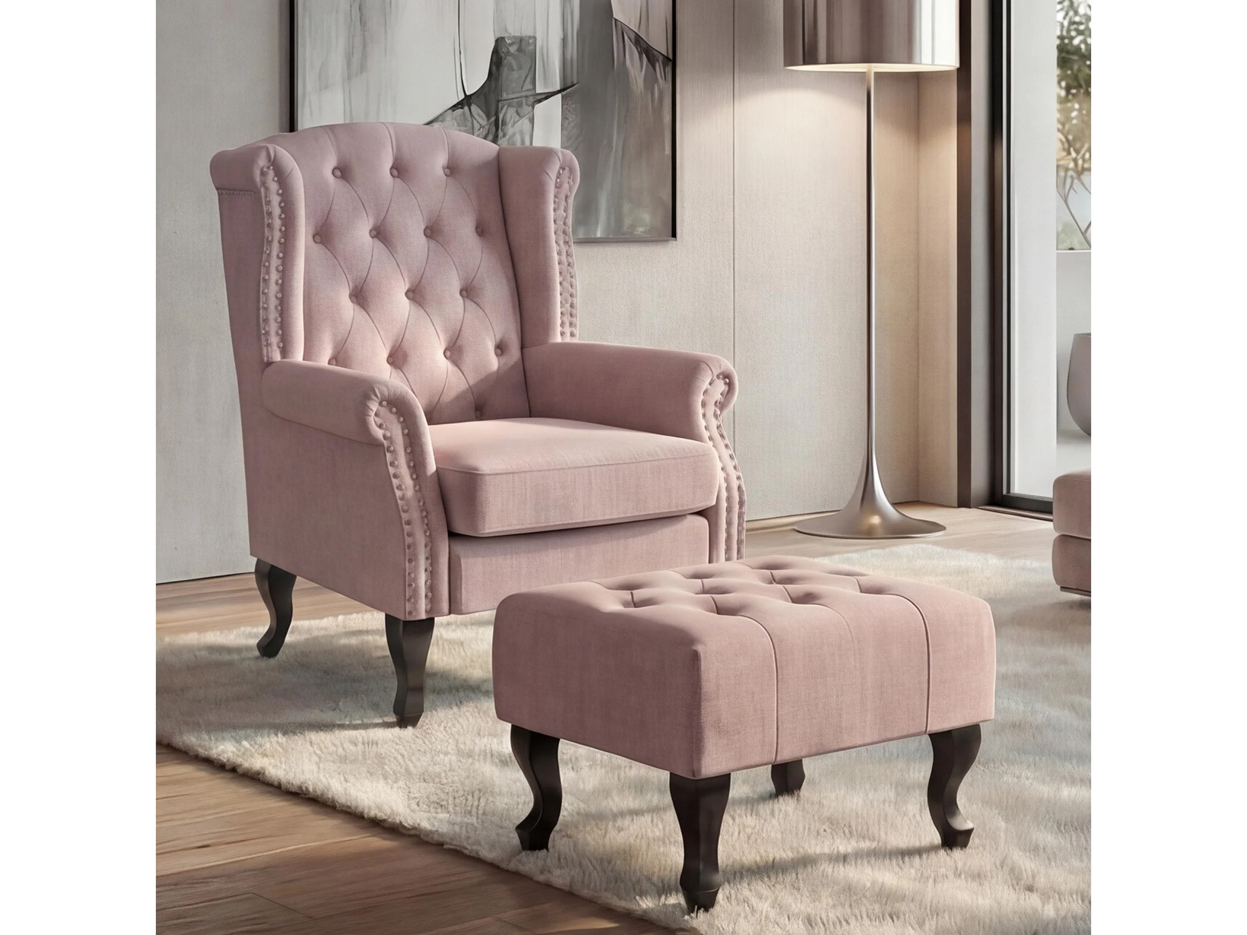 Fauteuil relax Oxford, rose clair avec pouf